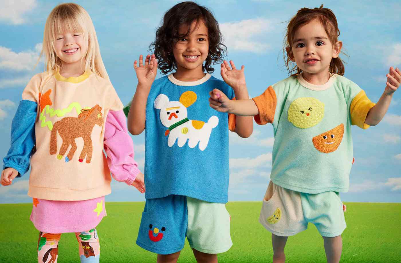 Coordinate your little one's look with quirky combos like Giddy Up Terry Sweats tops and Peel Party Skirts. Perfect for playdates and photoshoots alike.
