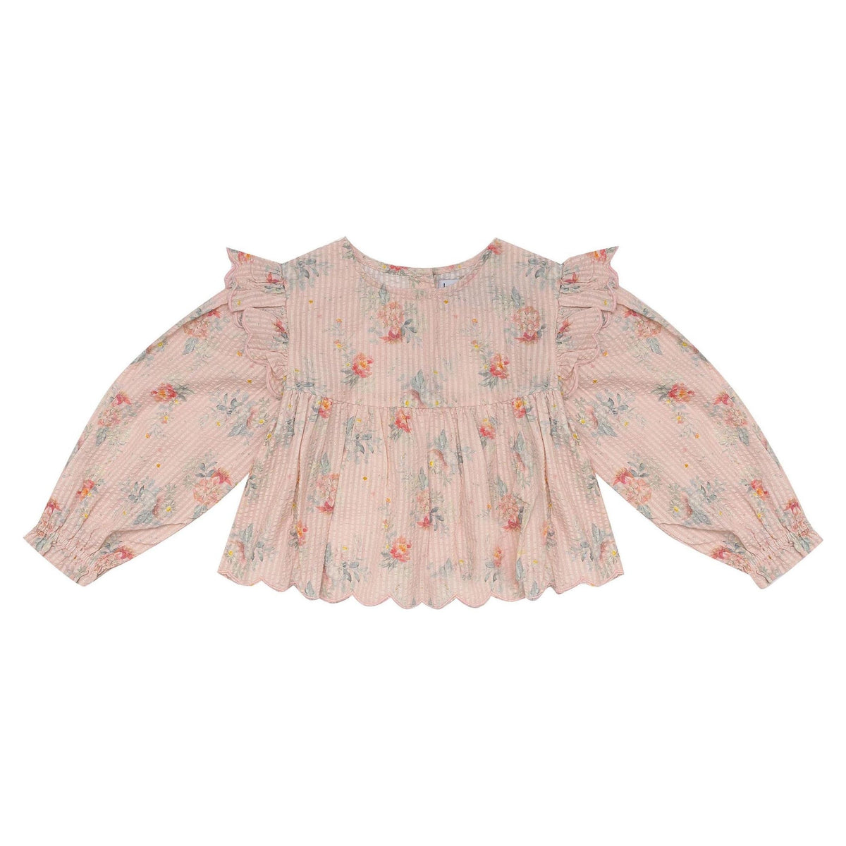 Adorned with a delicate frill, sweet gold buttons and scalloped edge detail, this versatile piece is ideal for layering during chilly winter days.