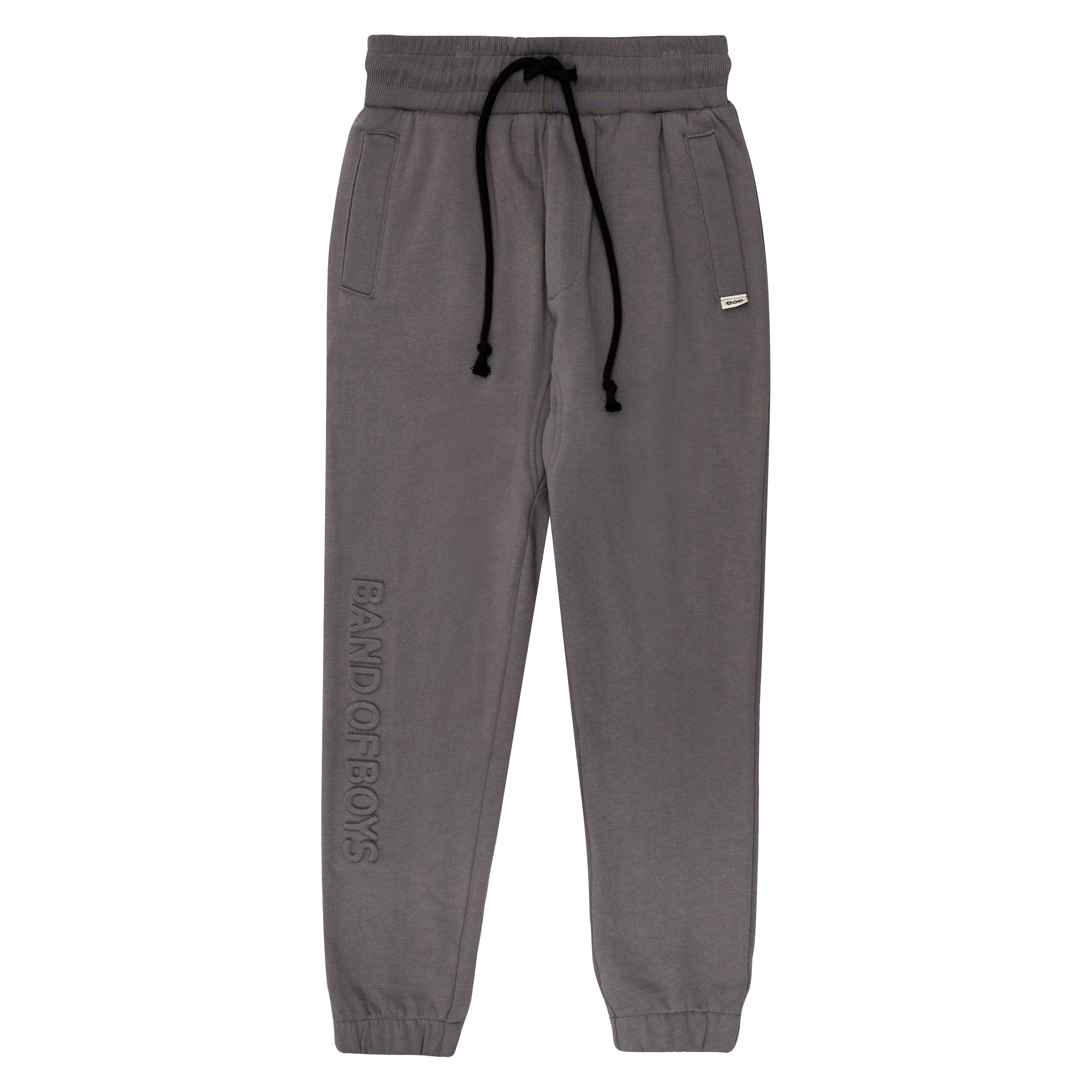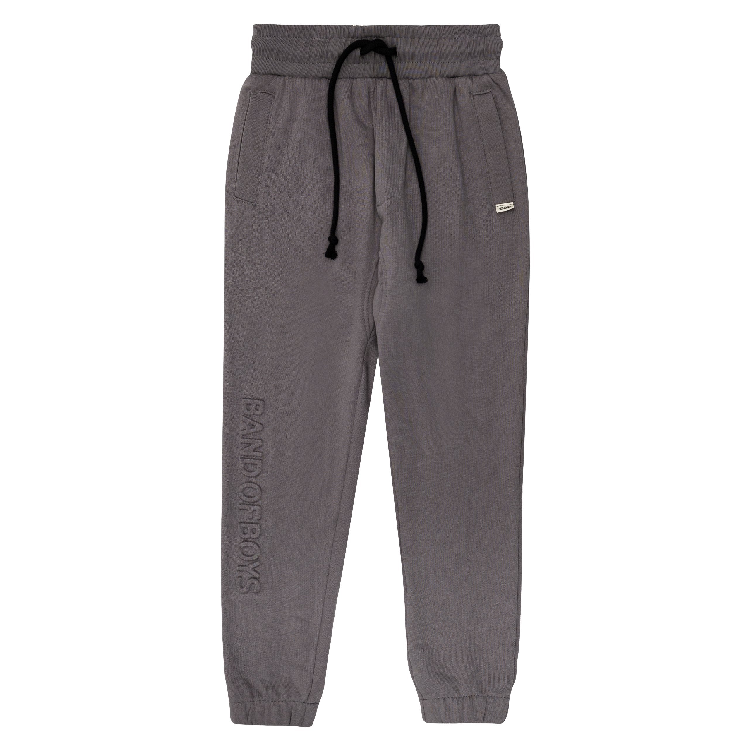 The Band of Boys Grey BOB Track Pant combines comfort with a cool, streetwear vibe. Designed for both style and movement, it features a welt pocket, a back pocket, and a gusset for extra comfort. The elasticated ankle cuffs and double-stitched drawstring waist keep everything secure and prevent the elastic from rolling. A subtle embossed logo and a bold rubber patch add a signature touch. Made from heavyweight, soft cotton fleece, these track pants have a regular fit and are true to size.