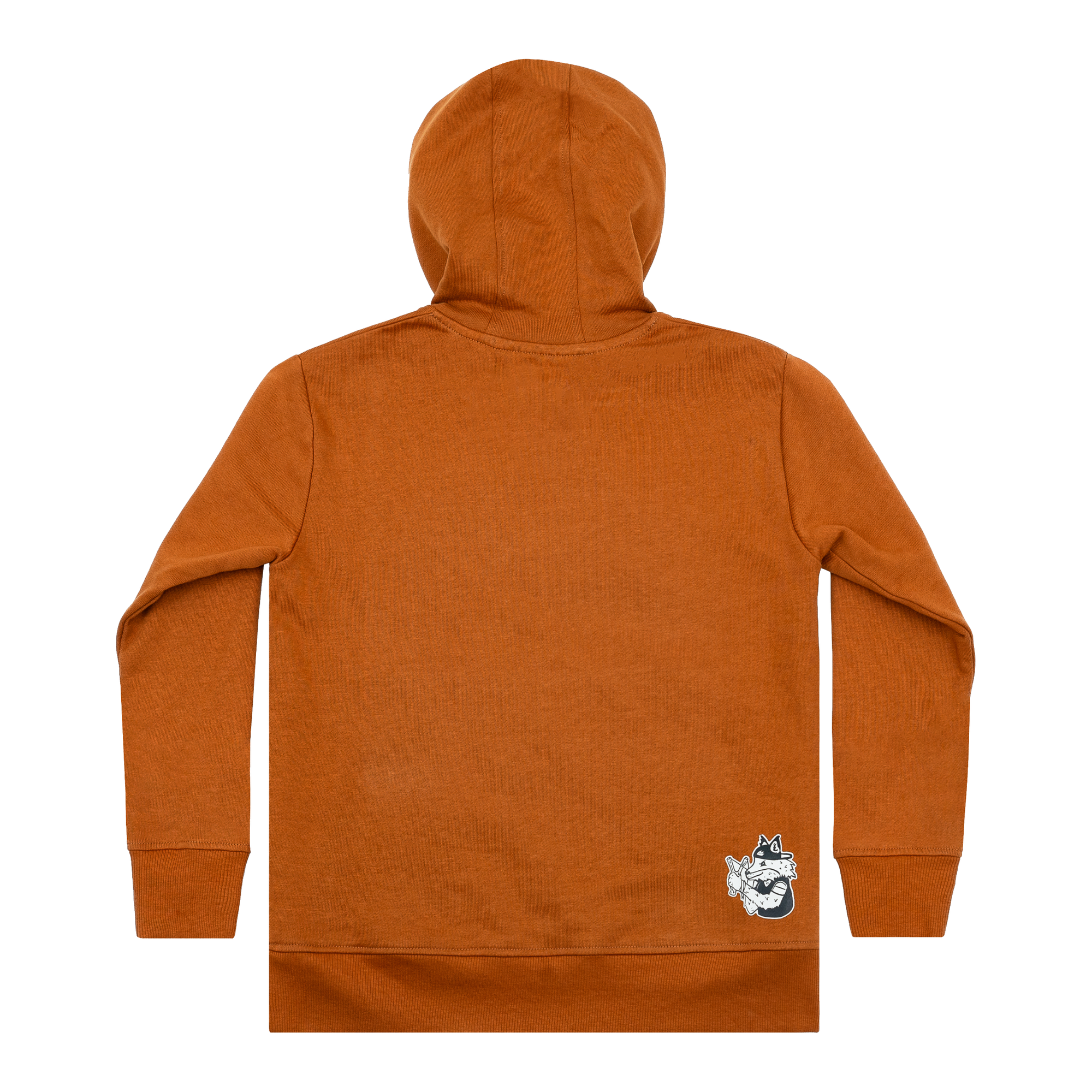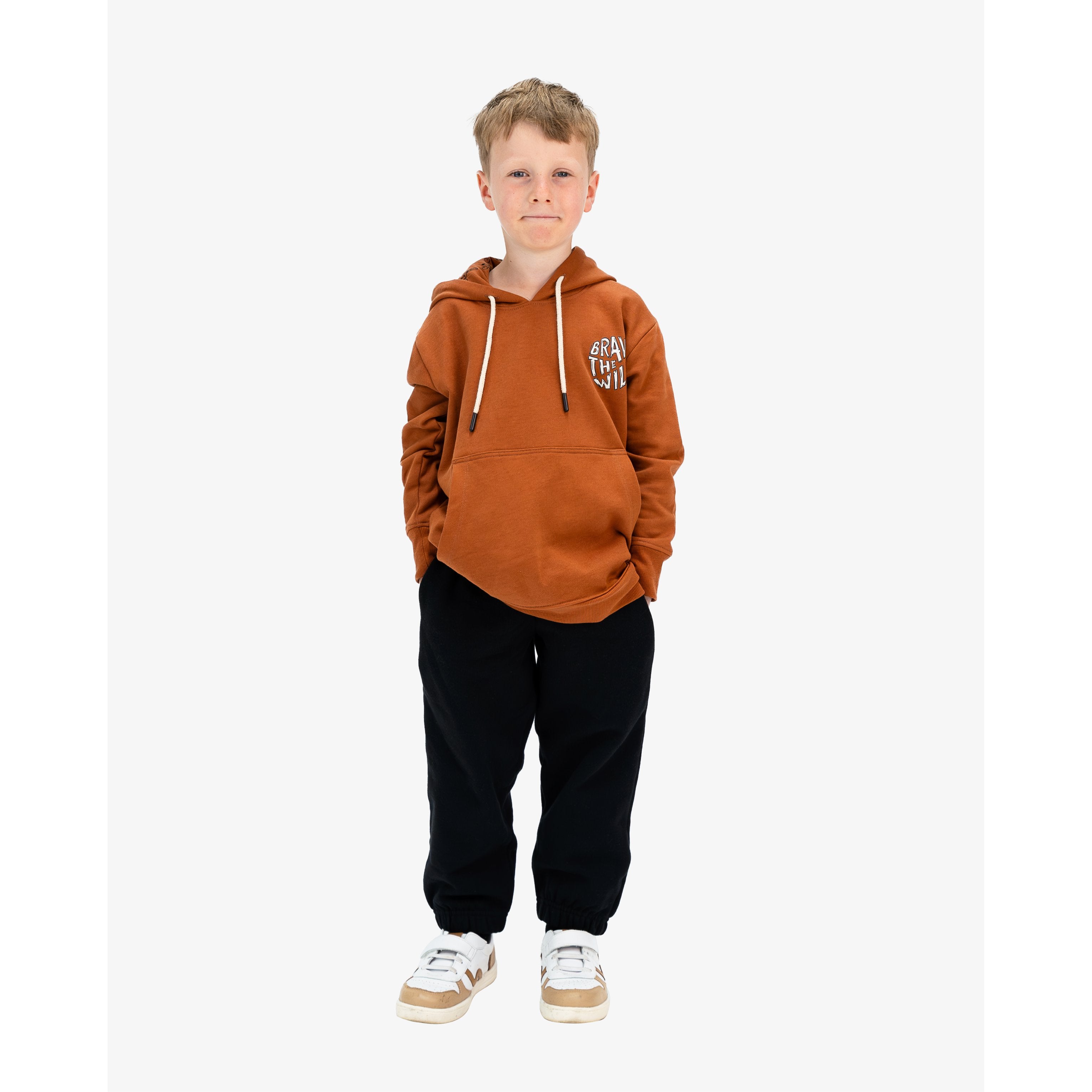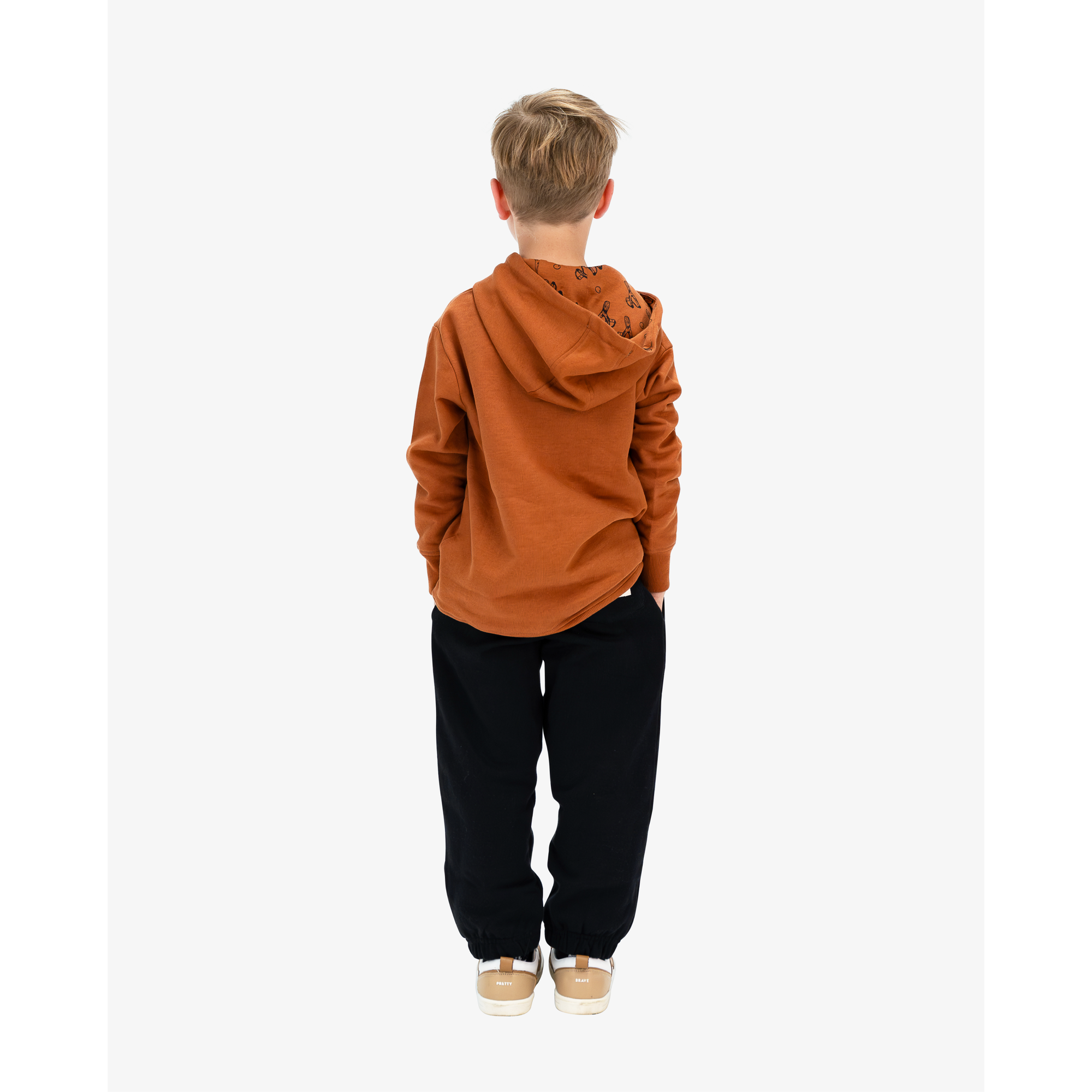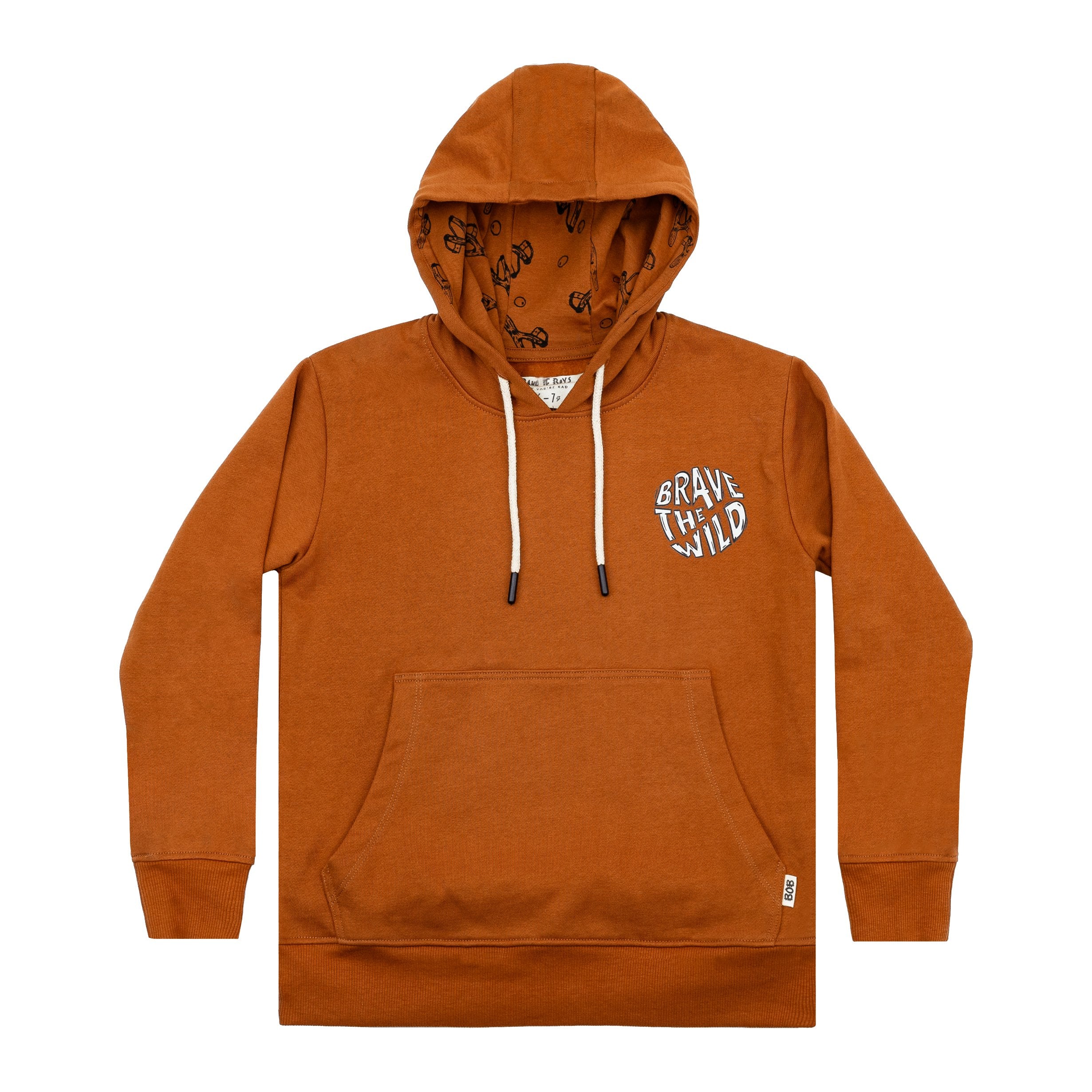 The Mocha Brave the Wild Hood by Band of Boys is a must-have in this season’s hottest shade. Designed for the mini who loves a laid-back style, this hoodie will be on repeat all season long. Crafted from soft fleece cotton, this hoodie features a small screenprint graphic on the front and back, plus a matching sling-shot print lining in the hood.