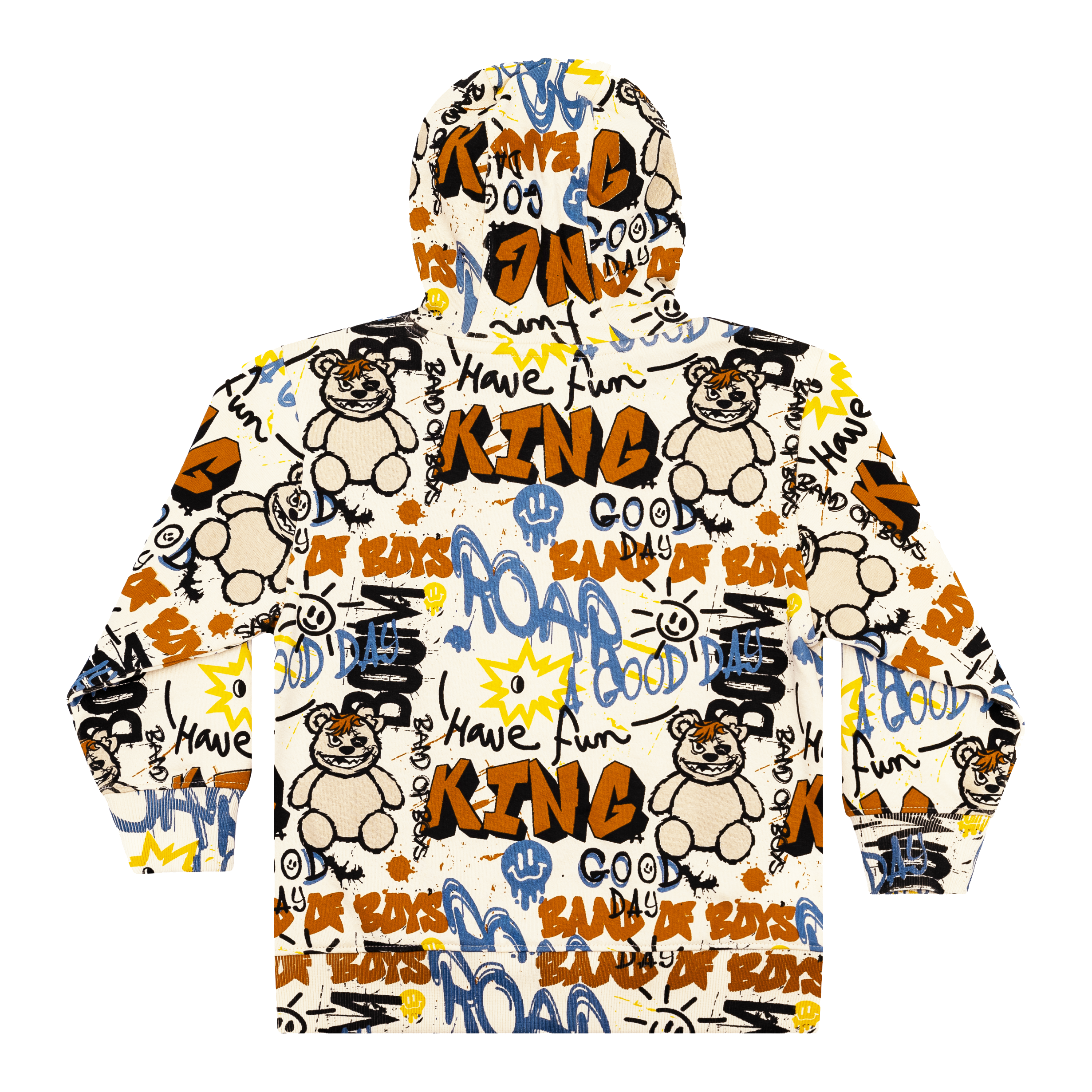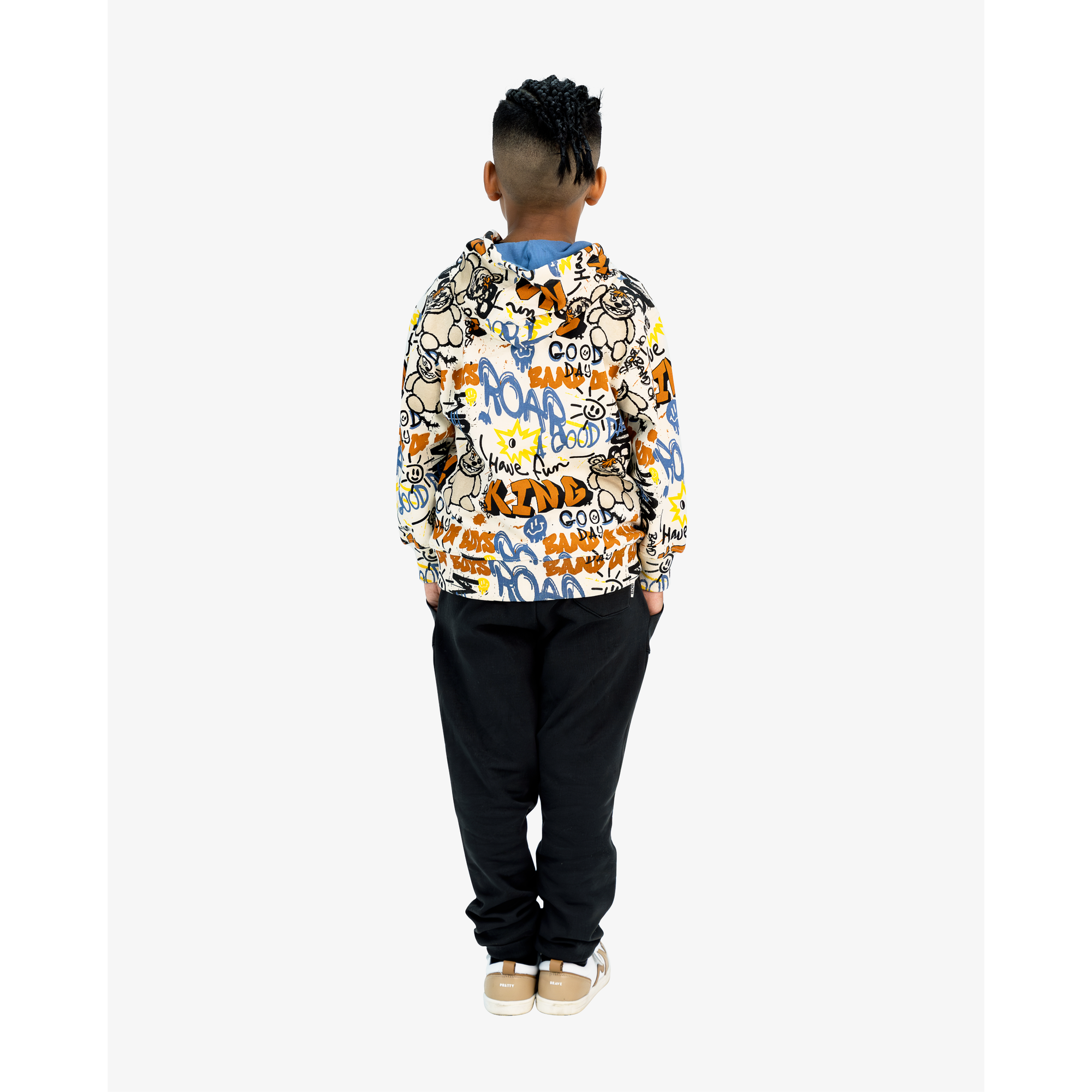 The Iconography Hood by Band of Boys is guaranteed to be a favourite this season. This fleece hood has a rad repeat print, perfect for fun loving kids who like to make a statement with their clothing. It has a 3-panel hood, and kangaroo pocket for storing treasures and keeping hands warm on cooler days.