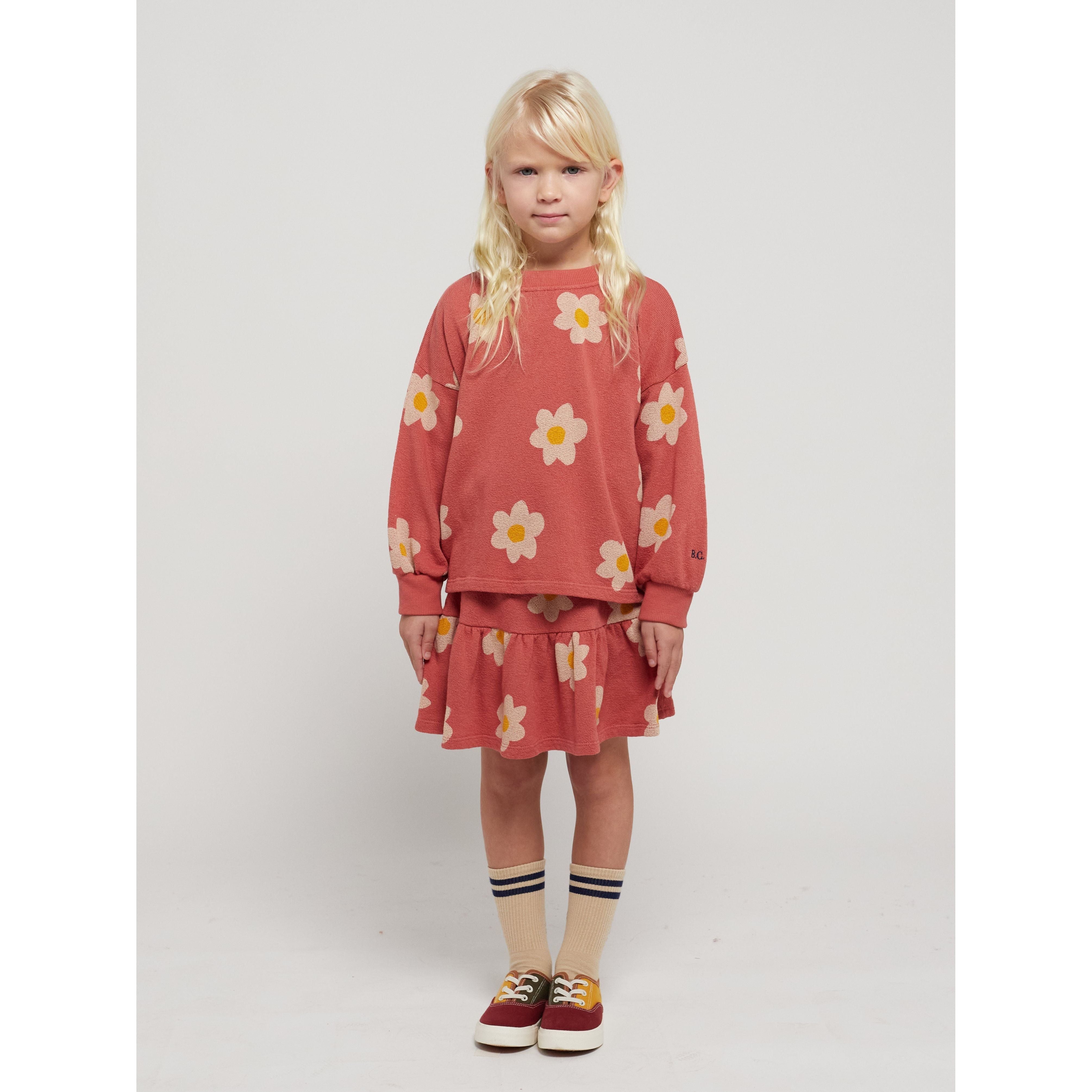 100% cotton salmon pink round neck sweatshirt. Designed with long sleeves, ribbed cuffs, round neck, structured fabric and inner brush fleece. It has a loose fit. Made in Spain.