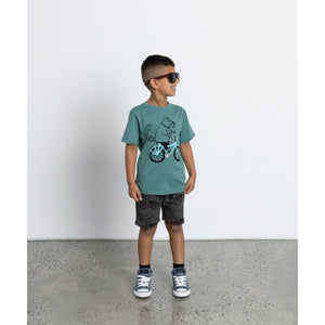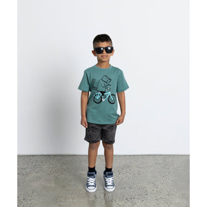 Tshirting weight short with elastic waistband, side pockets, back pocket and shoelace cord. 95% Cotton // 5% Elastane.
