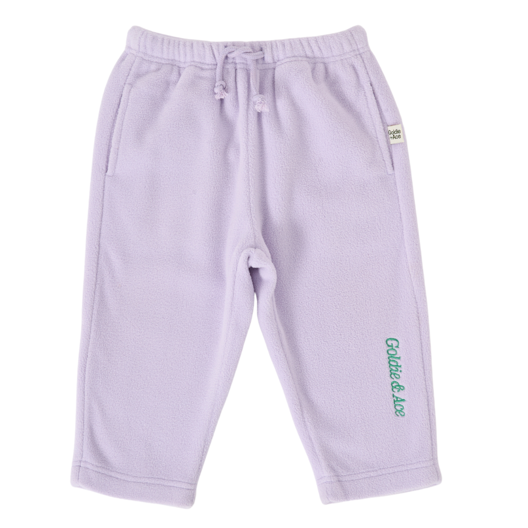 Oversized. Size down for a more true to size fit. Elasticated waist with functional drawstring and pockets. Straight leg fit. Cosy polar fleece fabrication, perfect for keeping warm on cold days. Features embroidery detail on side leg.