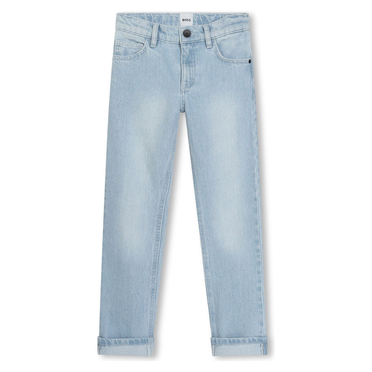 These BOSS jeans are a staple for everyday wear. They have five pockets, including a back pocket which features the logo, and a brand label on the back.