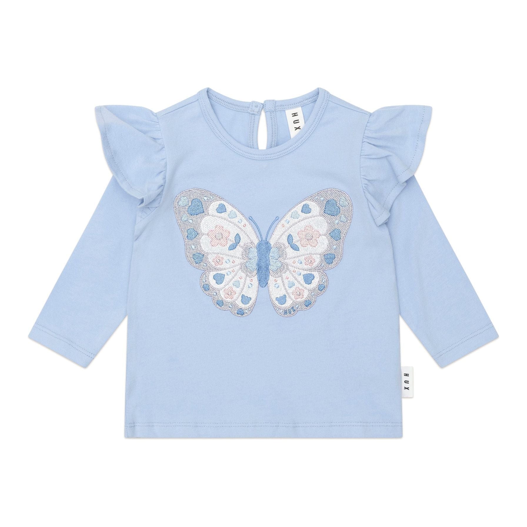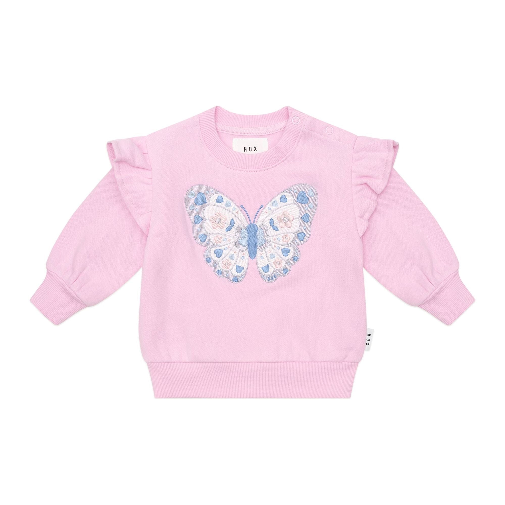 A warm and cosy fluffy fleece sweatshirt, with super sweet shoulder frills. It’s made from the dreamiest organic cotton that feels like a big hug from your bestie. It features a sparkly butterfly embroidery on the tummy. Baby sizes include stainless steel back snaps for easy dressing