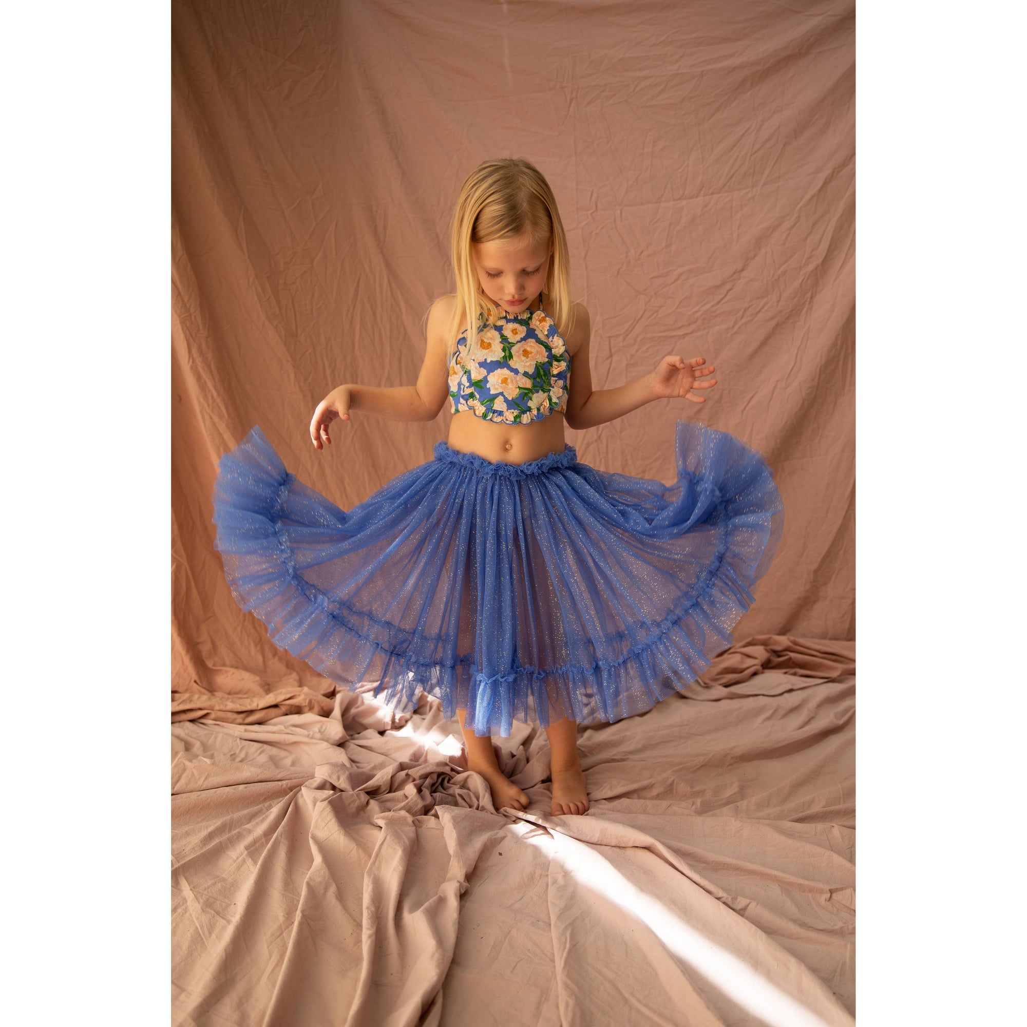 An absolute must for twirlers, dancers and dreamers, “Carrie” is the big sister of our classic tutu. Falling around mid-shin length with an extra layer of gathered tule and an elastic ruffle waist. She makes every outfit a “special” one and can be layered over everything from jeans and tights to frilly knickers and leotards.