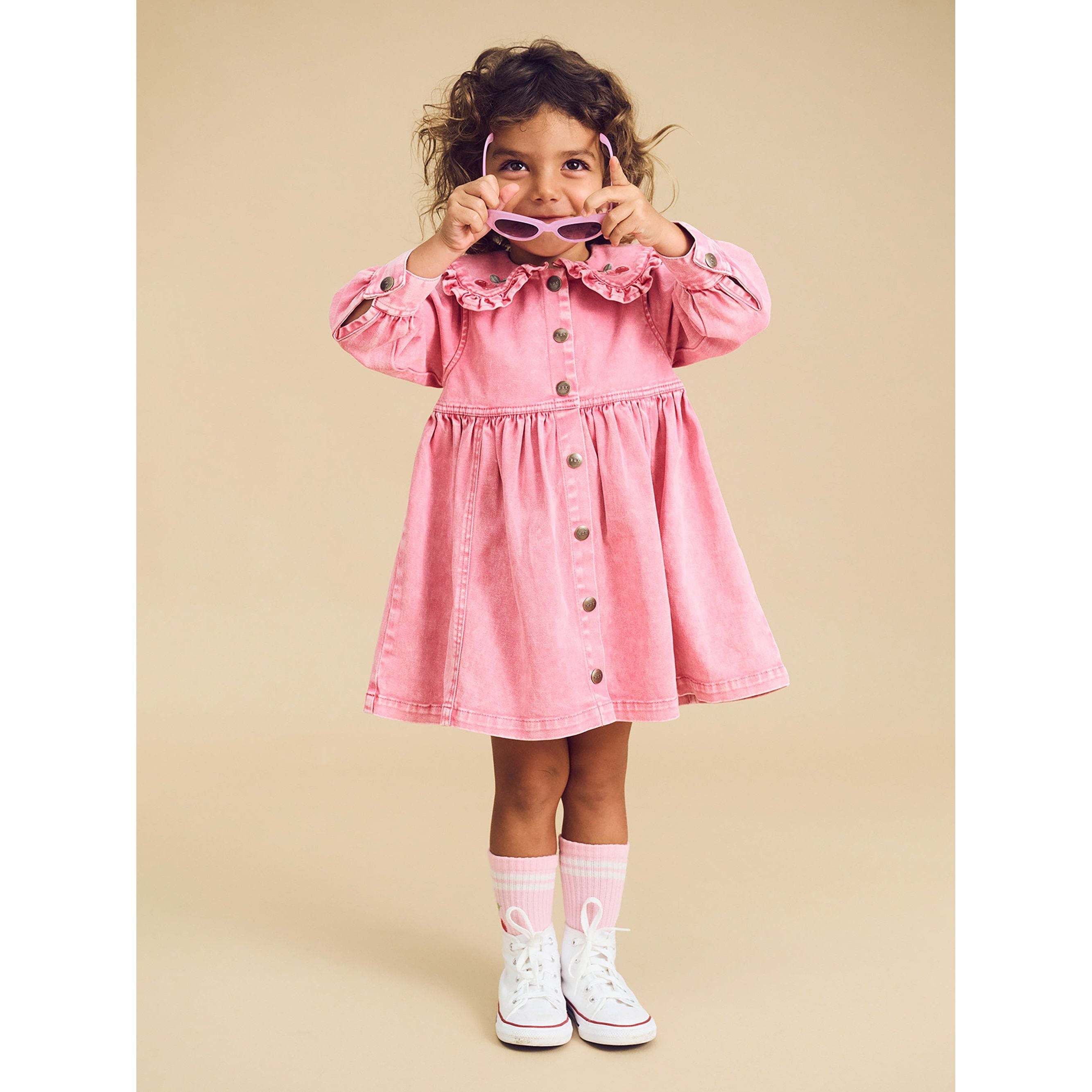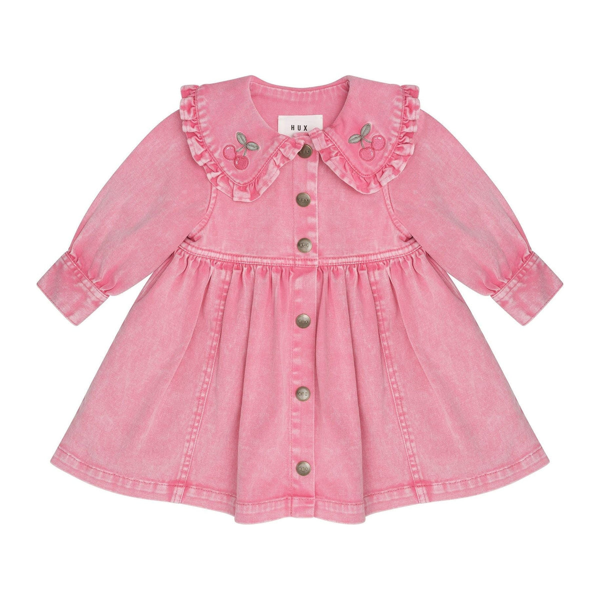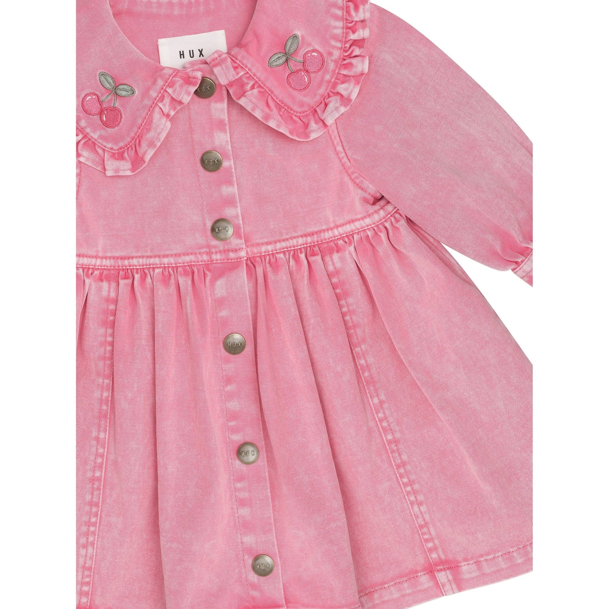 Super cute cotton stretch garment dye dress with cherry embroidery on collar