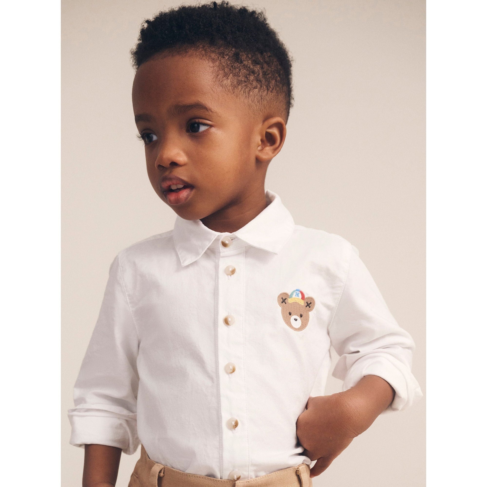 Their first ever white button down shirt. In a classic crisp white hue made from beautiful cotton with a relaxed casual fit. A timeless style, featuring a cute Huxbear embroidery twist.
