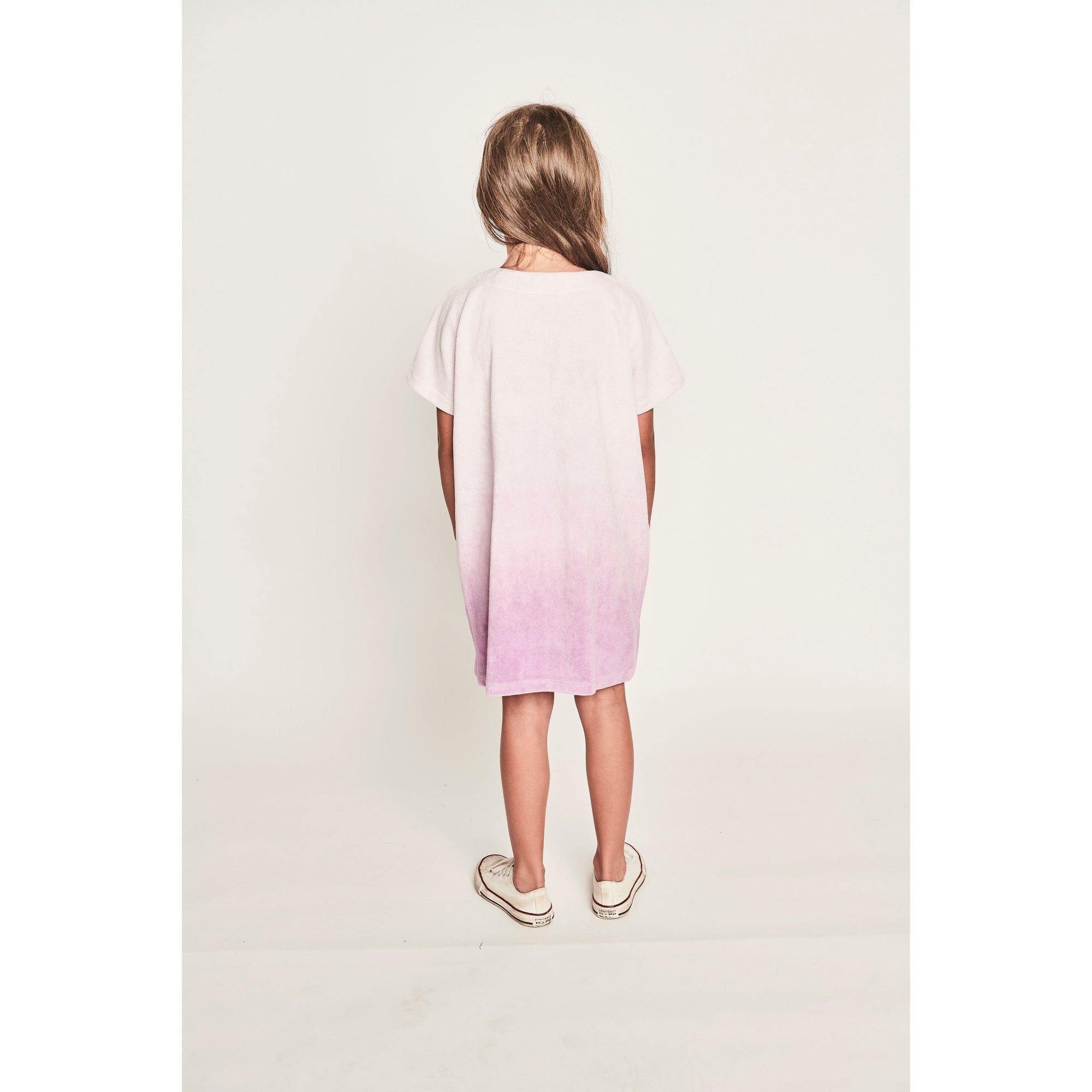 Look beautiful and feel comfortable wearing the Crystal Dress - Lilac Dip Dye. This dress is crafted with 100% cotton terry towelling for luxurious softness and breathability. Lilac dip dye pattern give it a stylish and modern look.