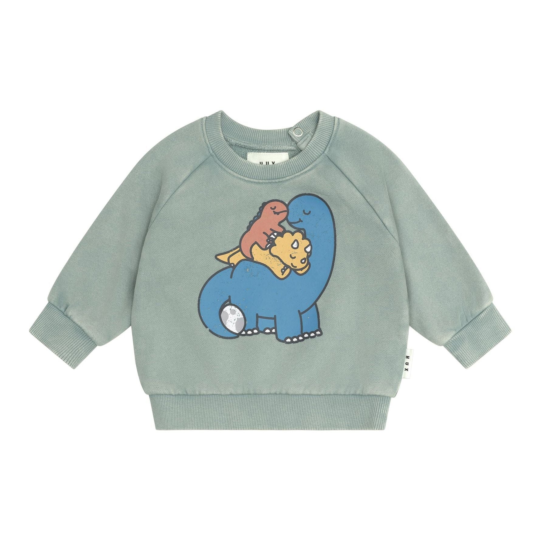 Super soft, premium organic cotton garment dyed terry sweatshirt with cuddlesaurus print