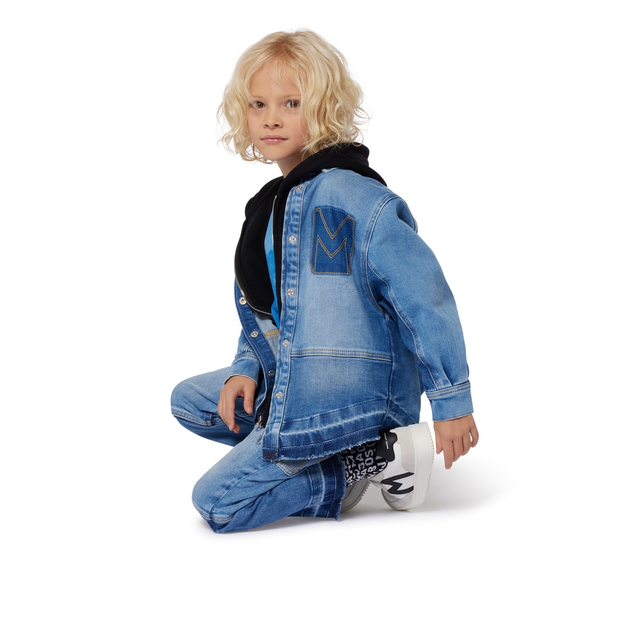 These MARC JACOBS jeans stand out thanks to their on-trend distressed look. The pockets on the sides and back feature topstitching in the shape of an "M". The waist in adjustable in sizes up to 10 years. This design is made of a cotton-rich blend.