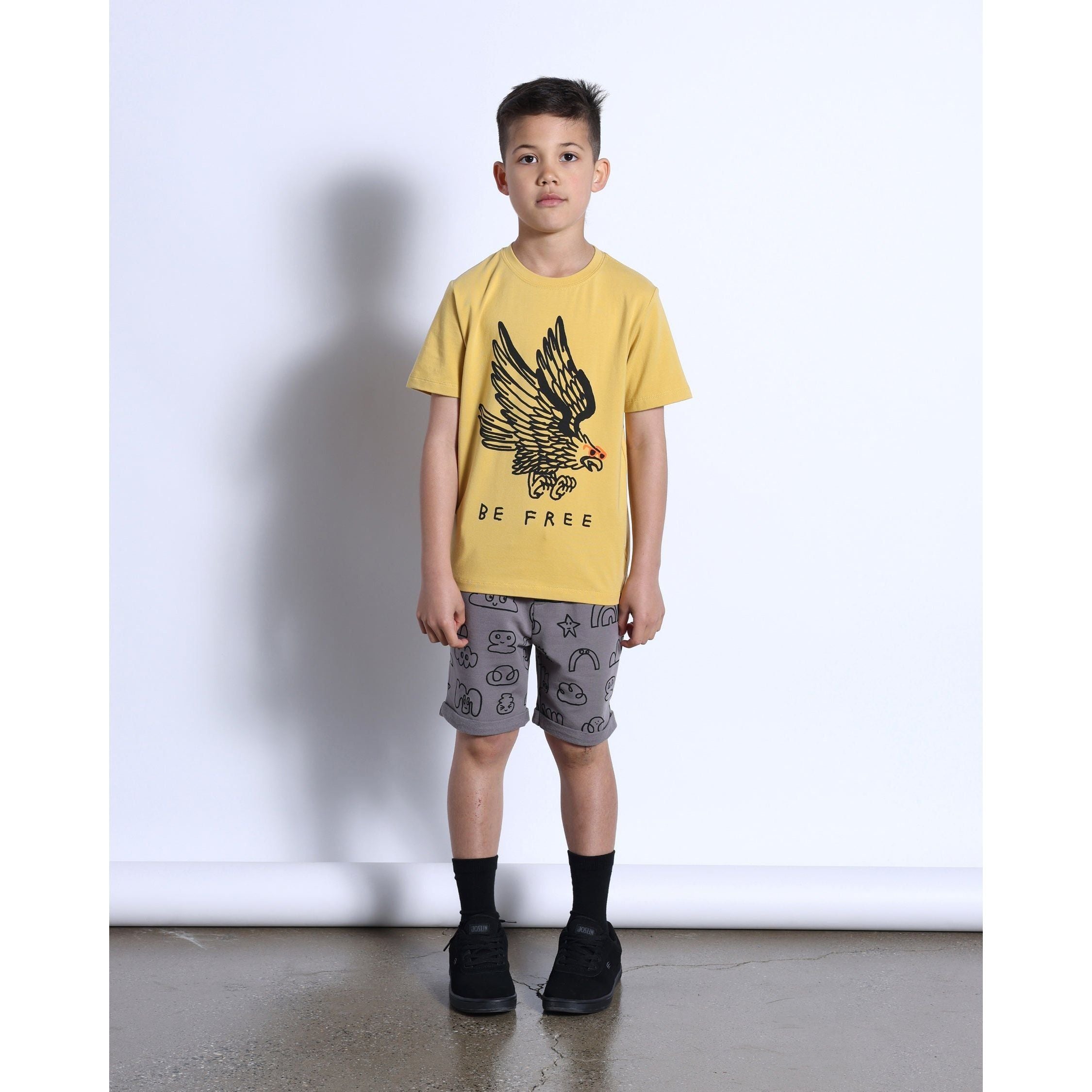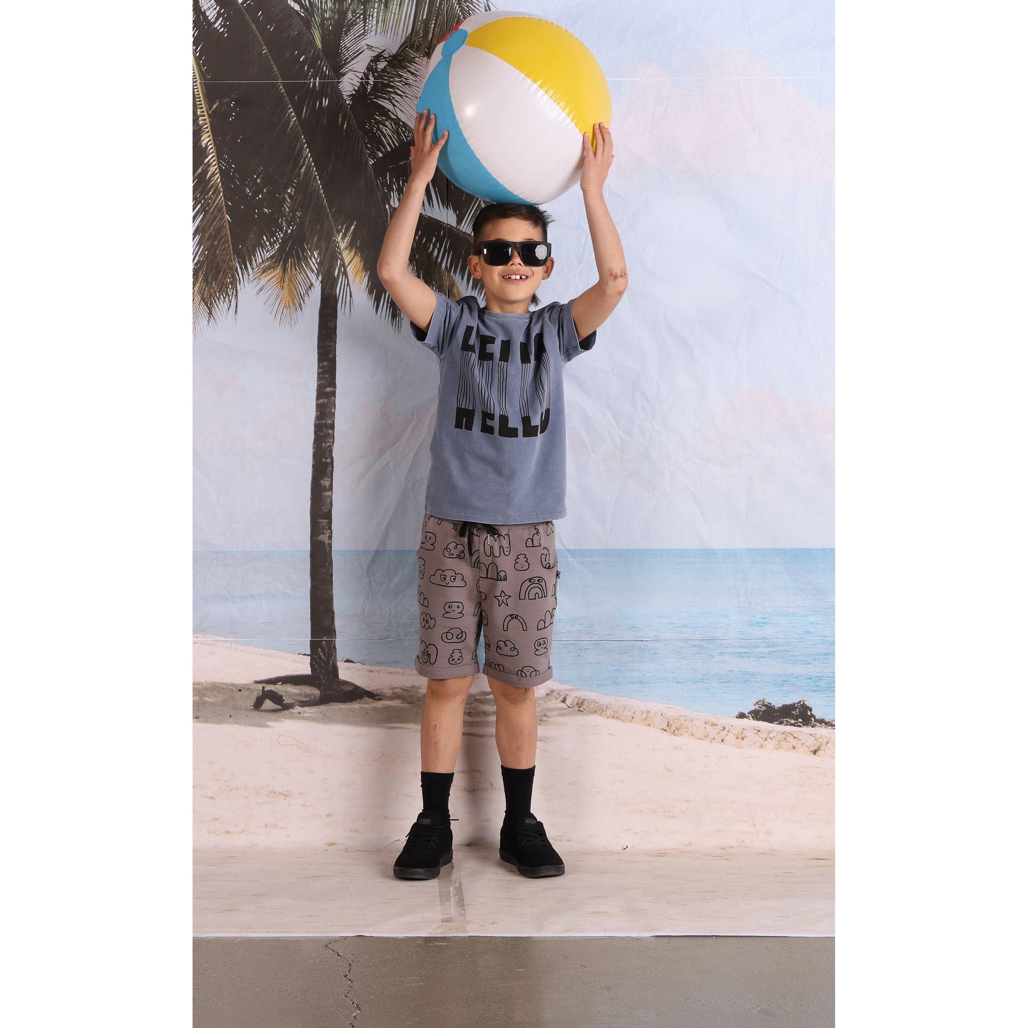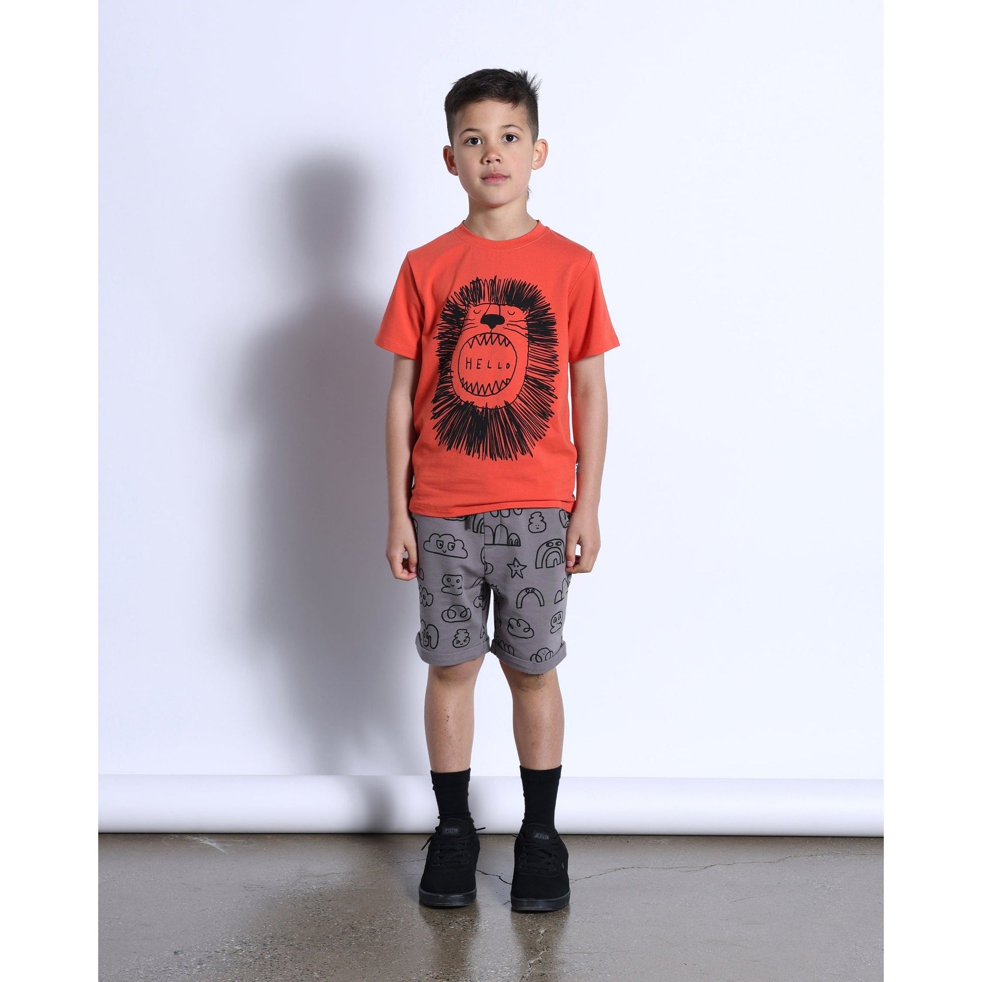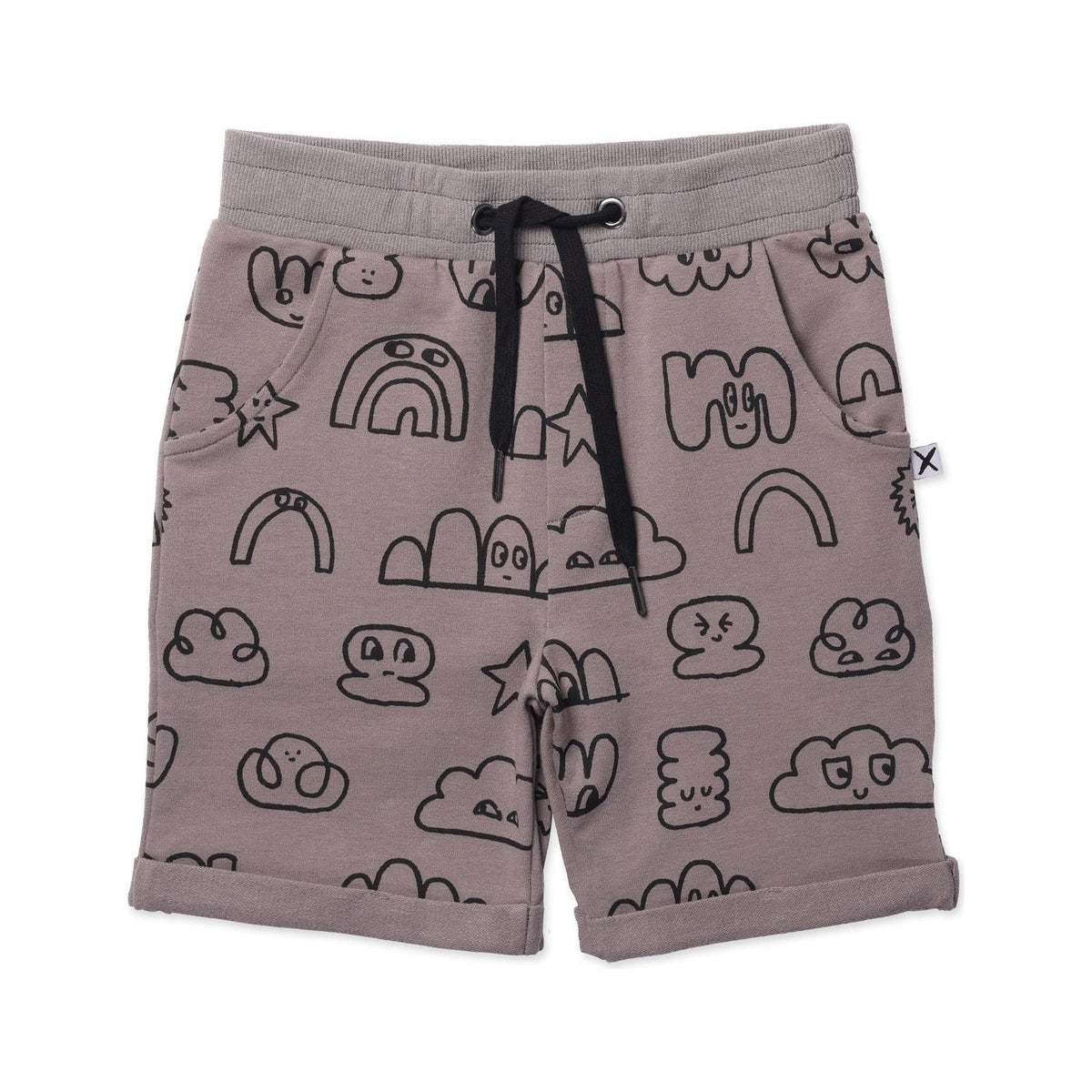 Hoodie weight shorts with 2x2 rib elasticated waistband, shoelace cord, front pockets and a rolled-up hem. 95% Cotton // 5% Elastane.