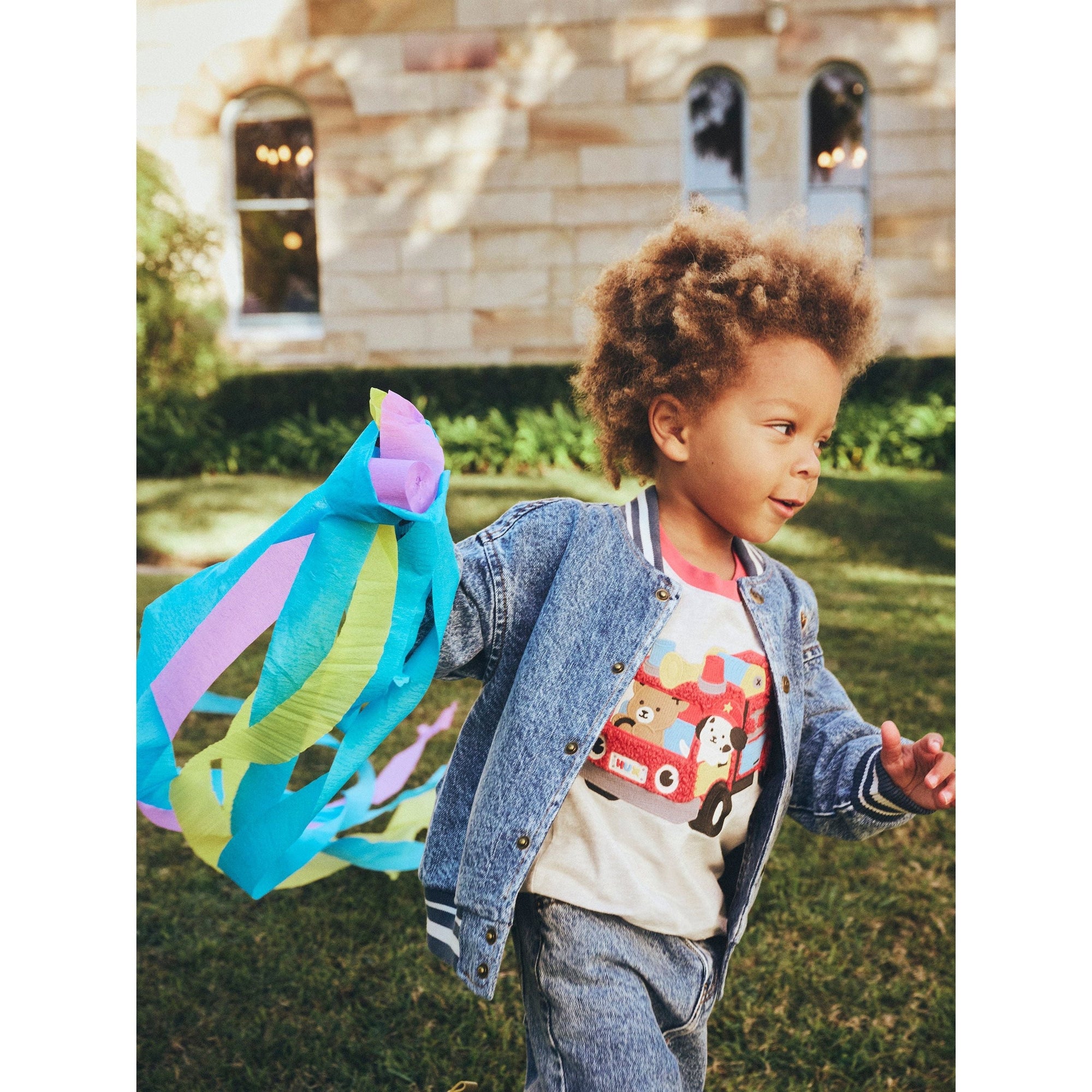The ultimate denim jacket. This vintage style bomber is made from soft-as-butter denim that feels too good not to wear day after day. Featuring a varsity Huxbear embroidery, antique brass snap buttons and front pockets for snacks on-the-go, it doesn’t get much cooler than this.