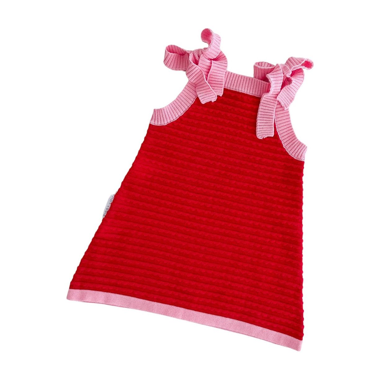 Knitted dress in our Elodie colours. Adjustable ties at shoulder for the perfect fit. Mix and match with items from our Elodie, Margot, Maeve + Rosa Collections for the perfect outfit.