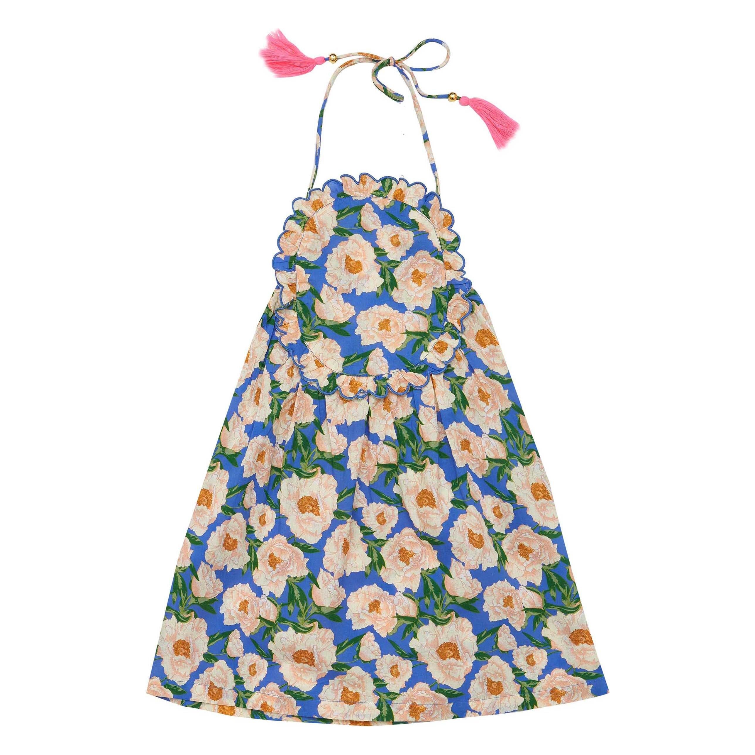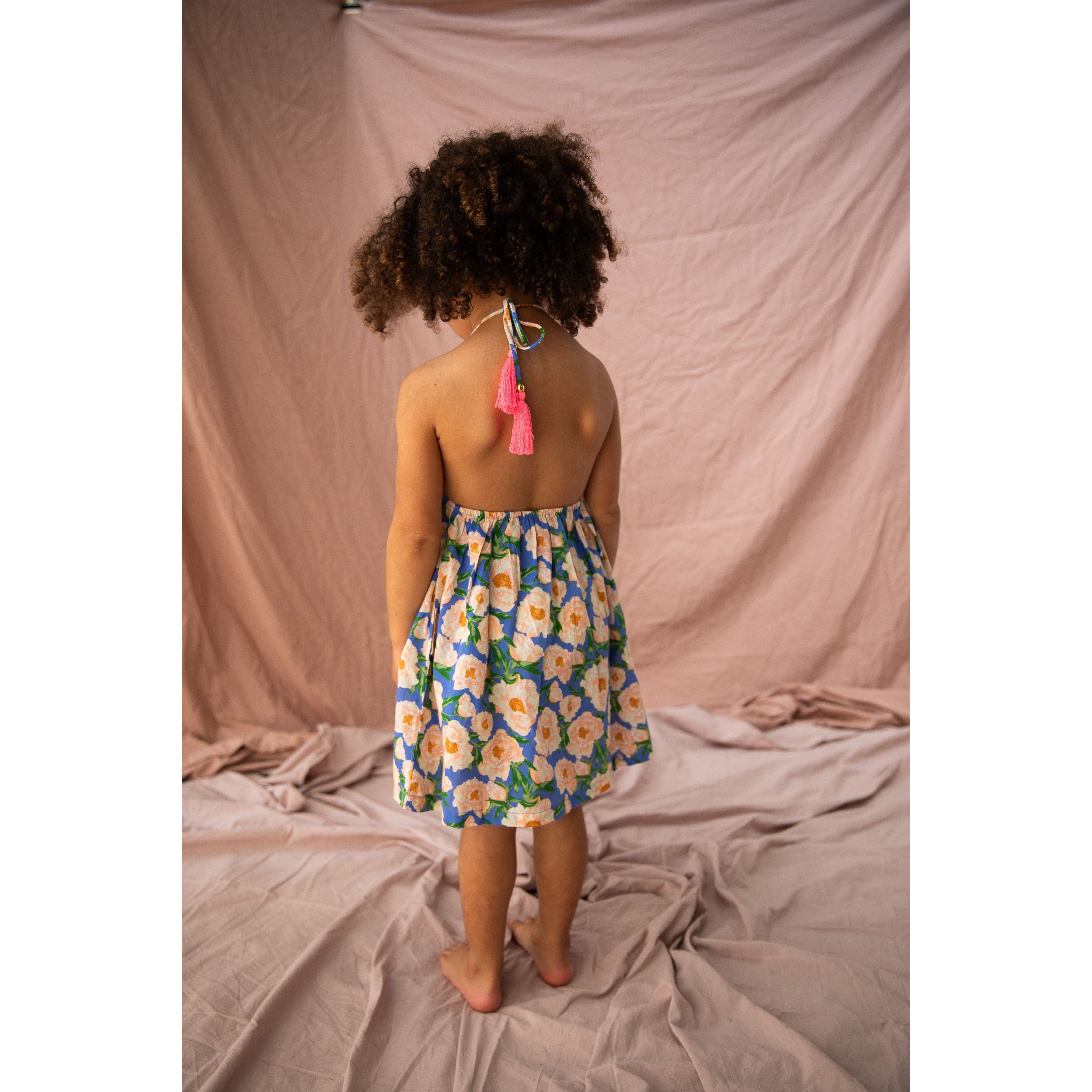 Breezy and cool all through summer, the Evie Dress has garden parties and park strolls covered. In our stunning Soiree Bouquet print on light cotton voile, set off with neon tassel ties. In case you missed it, her frill front panel matches back with the Freya baby romper for expert level sister dressing.