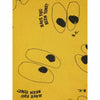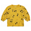 69% organic cotton 31% cotton yellow round neck sweatshirt. Designed with long sleeves, elasticated bottom, elasticated cuffs and round neck. It has a loose fit. Made in Spain
