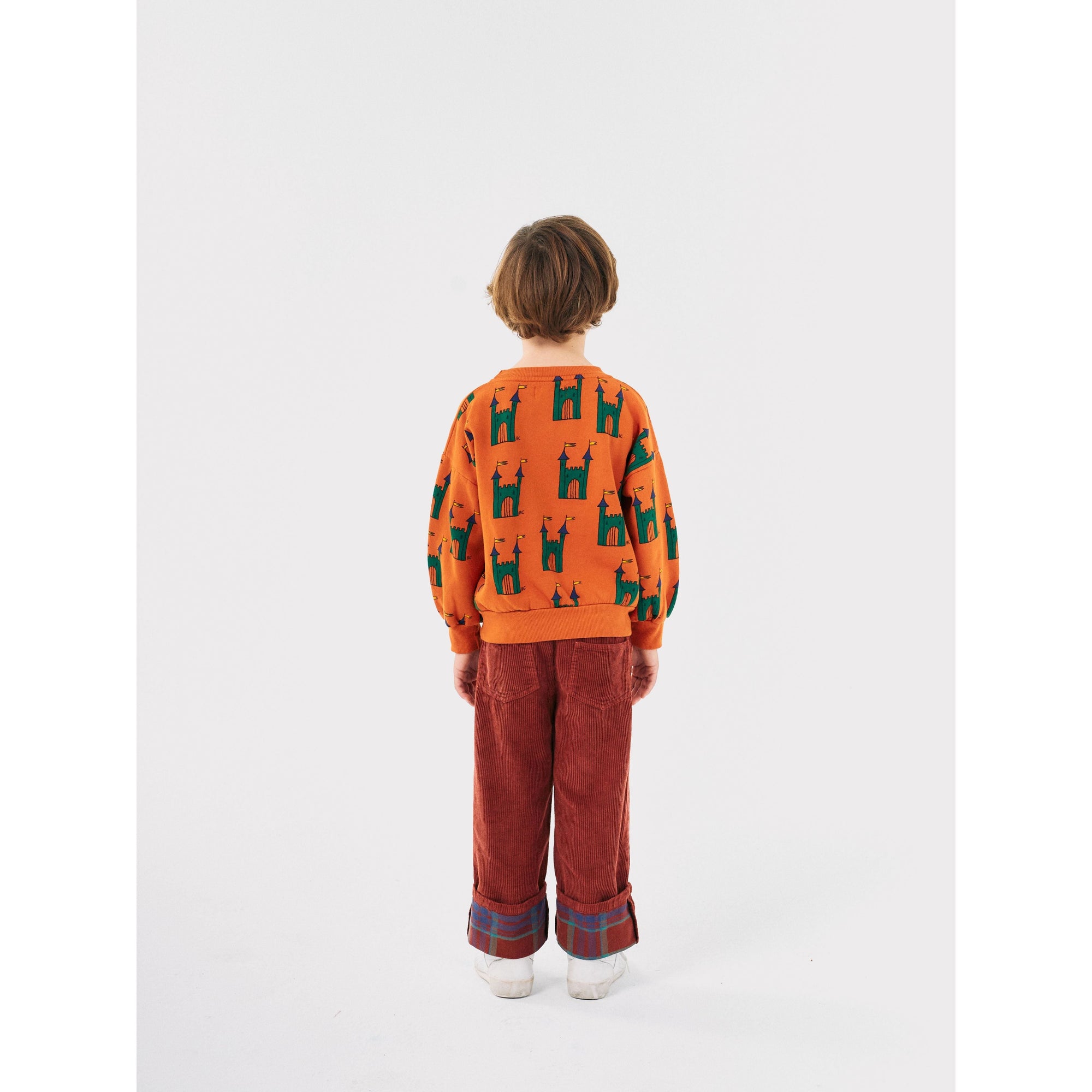 Designed with ribbed cuffs, loose fit, ribbed bottom, round neck and inner brush fleece