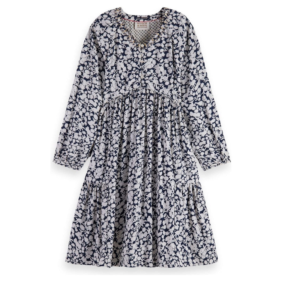 Embrace the season with this floral print dress made from soft viscose - a perfect blend of charm and comfort. The panelled detailing creates a stylish silhouette, while the mini length makes it perfect for both casual and special occasions.