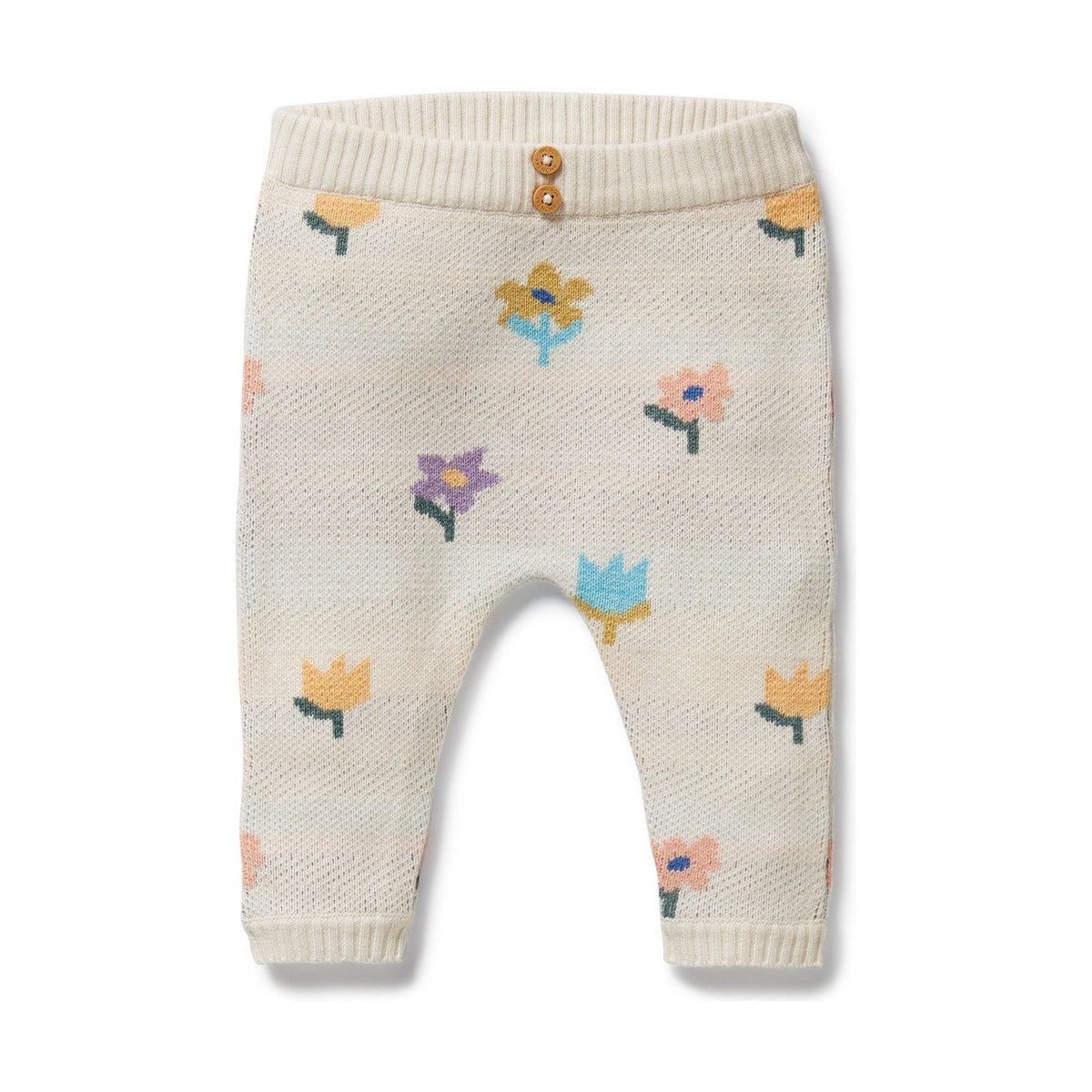 Wrap your baby in snuggly comfort with our knitted leggings. Made from a blend of organic cotton, bamboo, and wool, they'll keep your little one warm while being gentle on their tummy with a soft elastic waistband. The playful all over jacquard design adds a touch of charm. Key Features: Full length leg with stretchy waistband, mock wood button design detail, packaged in a bio-degradable bag. Details: 50% organic cotton, 43% bamboo, 7% wool. Gentle machine wash. Made in India.