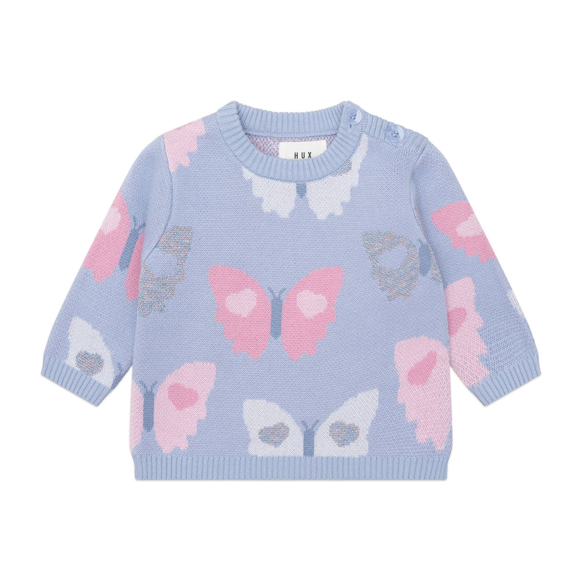 A warm hug, in jumper form. Made with luxuriously thick jacquard, this sponge knit jumper is the ultimate cosy layer. Warm enough to get you through the coldest months, it features an all over butterfly pattern and shoulder buttons in baby sizes.
