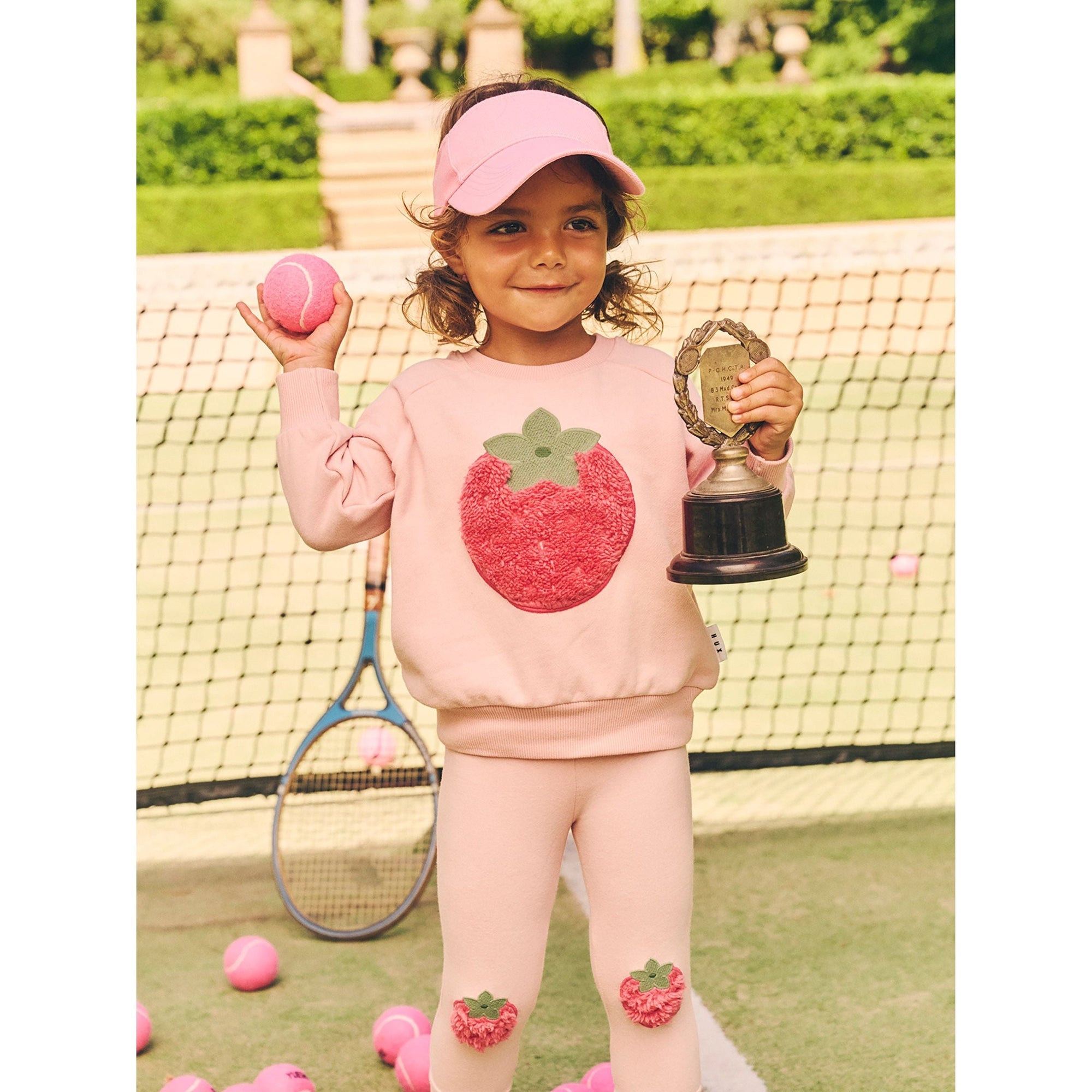 Super soft, premium organic cotton jersey leggings with fur strawberry applique on knees