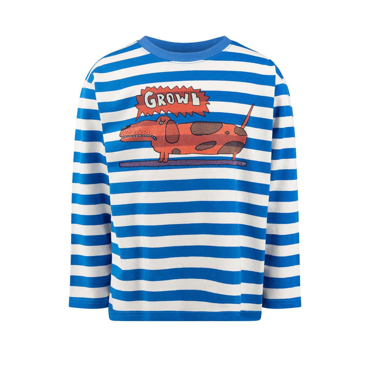 Unleash the fun with our Growl Long Sleeve T-Shirt! Featuring a playful dog graphic on a bold stripe design, this comfy tee is made from soft, breathable fabric for all-day comfort. Perfect for everyday wear, it’s the ideal choice for your little one to add some fun and style to their wardrobe!