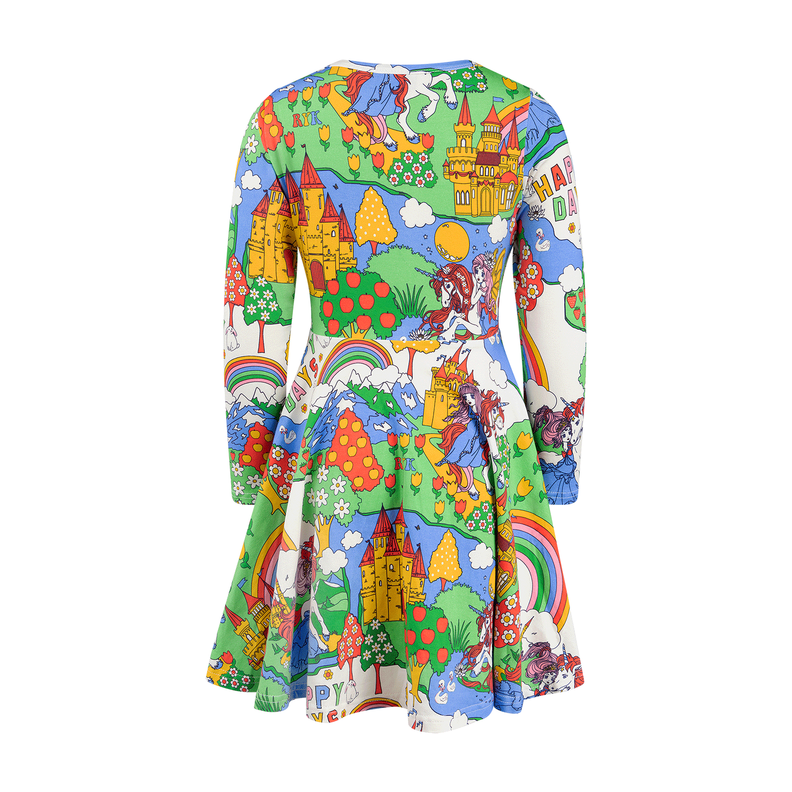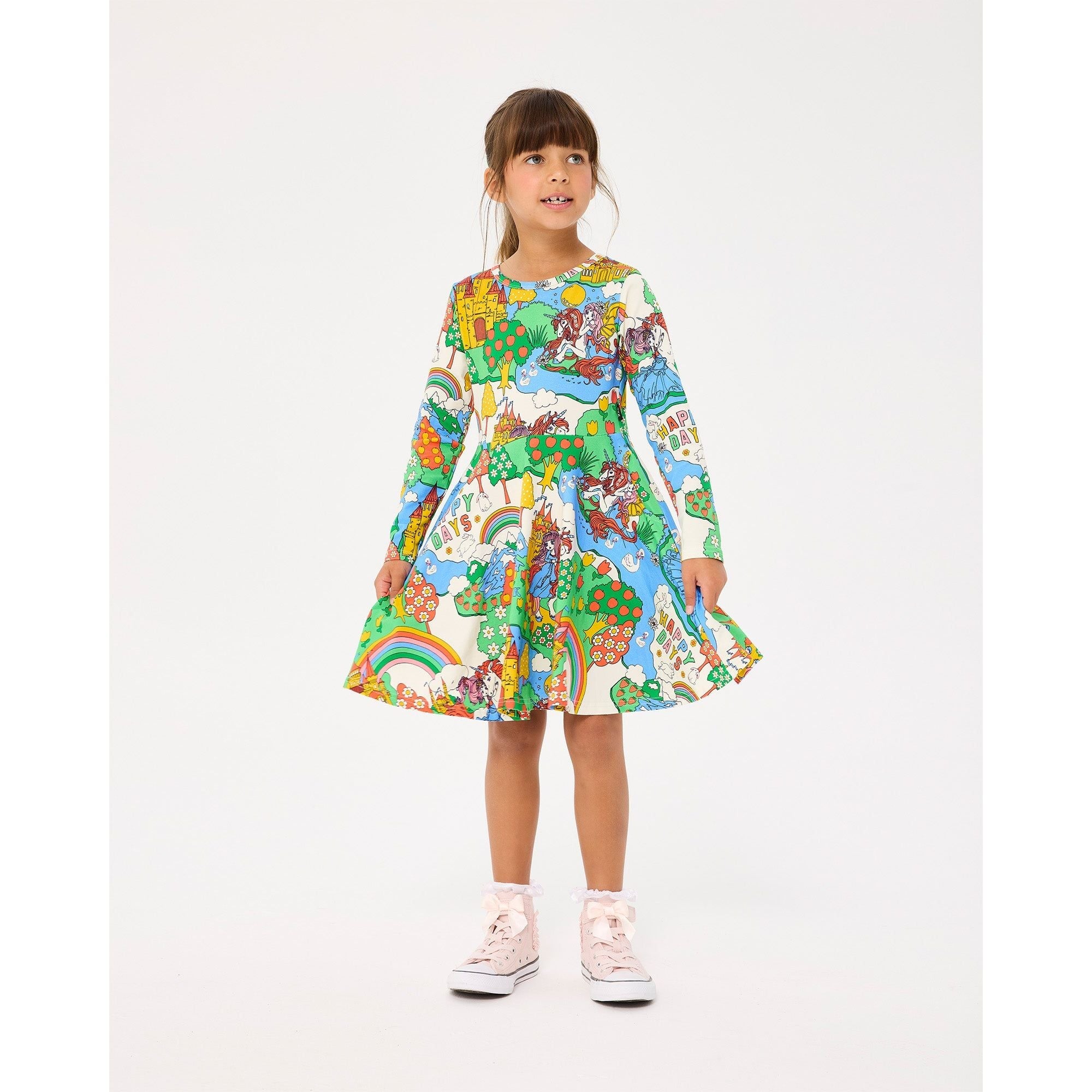 Dare to dream in our Happy Land Waisted Circus Dress! Comfortable soft cotton elastane jersey bodice and dreamy rainbow gathered tulle skirt. Twist and twirl all day long in this charming dress, it's magical and charming in every way.