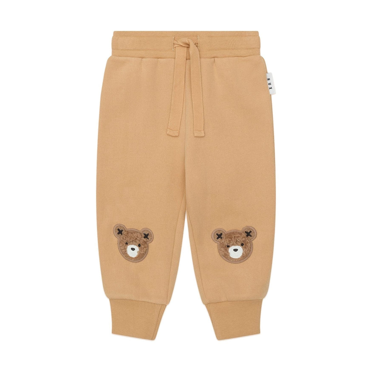 A warm and cosy pair of fleece track pants in a sporty, retro style. Made from fluffy organic cotton, they feature a functional drawstring for an adjustable fit, a cute-yet-comfy Huxbear embroidery knee detail and a soft, stretchy waistband to keep little tummies snug. Made for all day play.