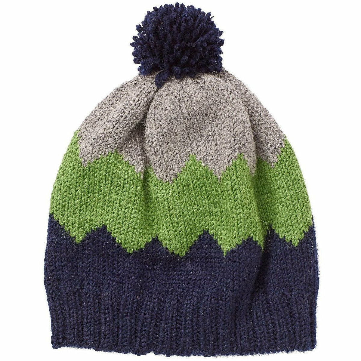 Hand knitted beanie with a three tone zig zag details on the main body, designed to be worn slouchy with a pom pom on the top. Made in 100% Merino Wool.