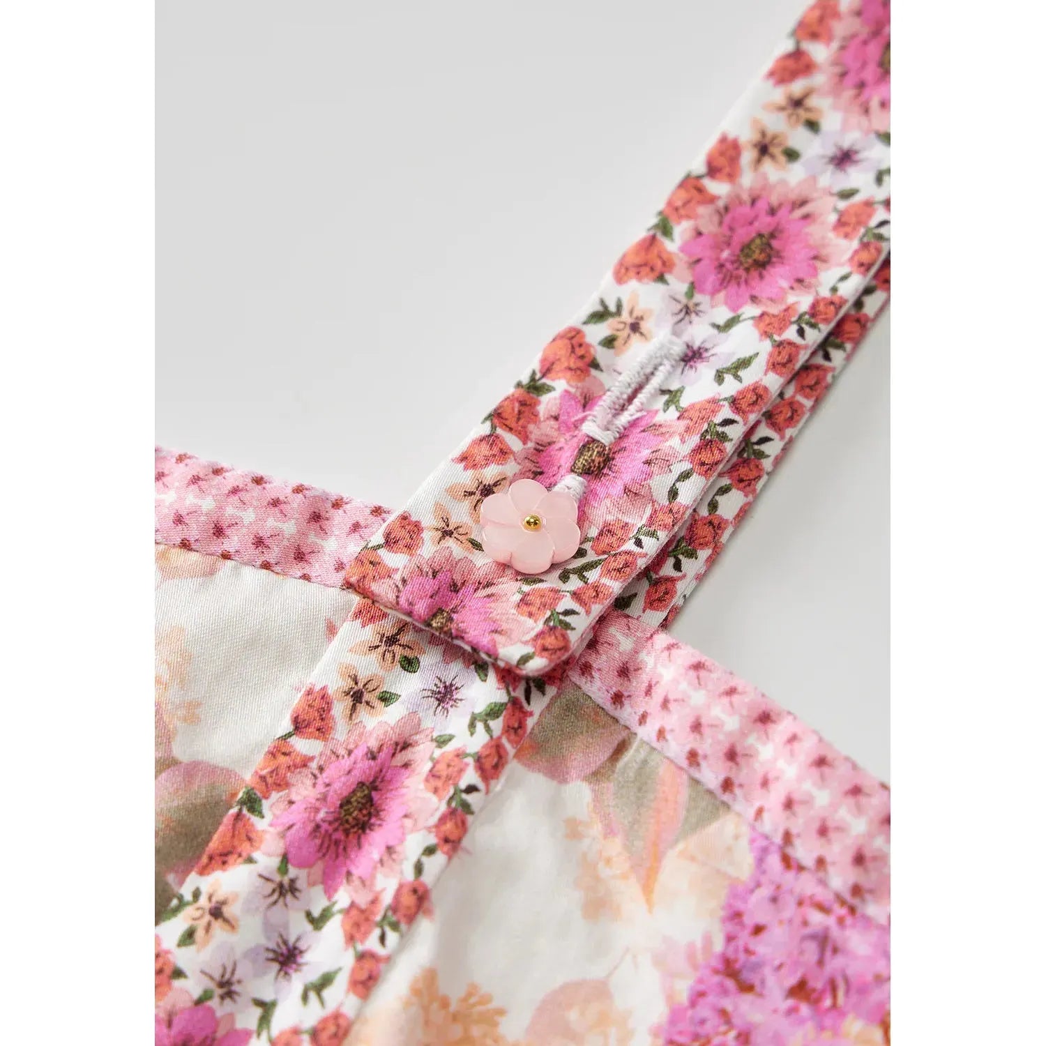 Our Hydrangea Romper is as sweet as can be. Adorned with an exclusive pink floral print, this romper features delicate straps and a comfortable fit. It's perfect for warm days filled with adventures and playtime. The adorable design will make your little one the center of attention wherever she goes.