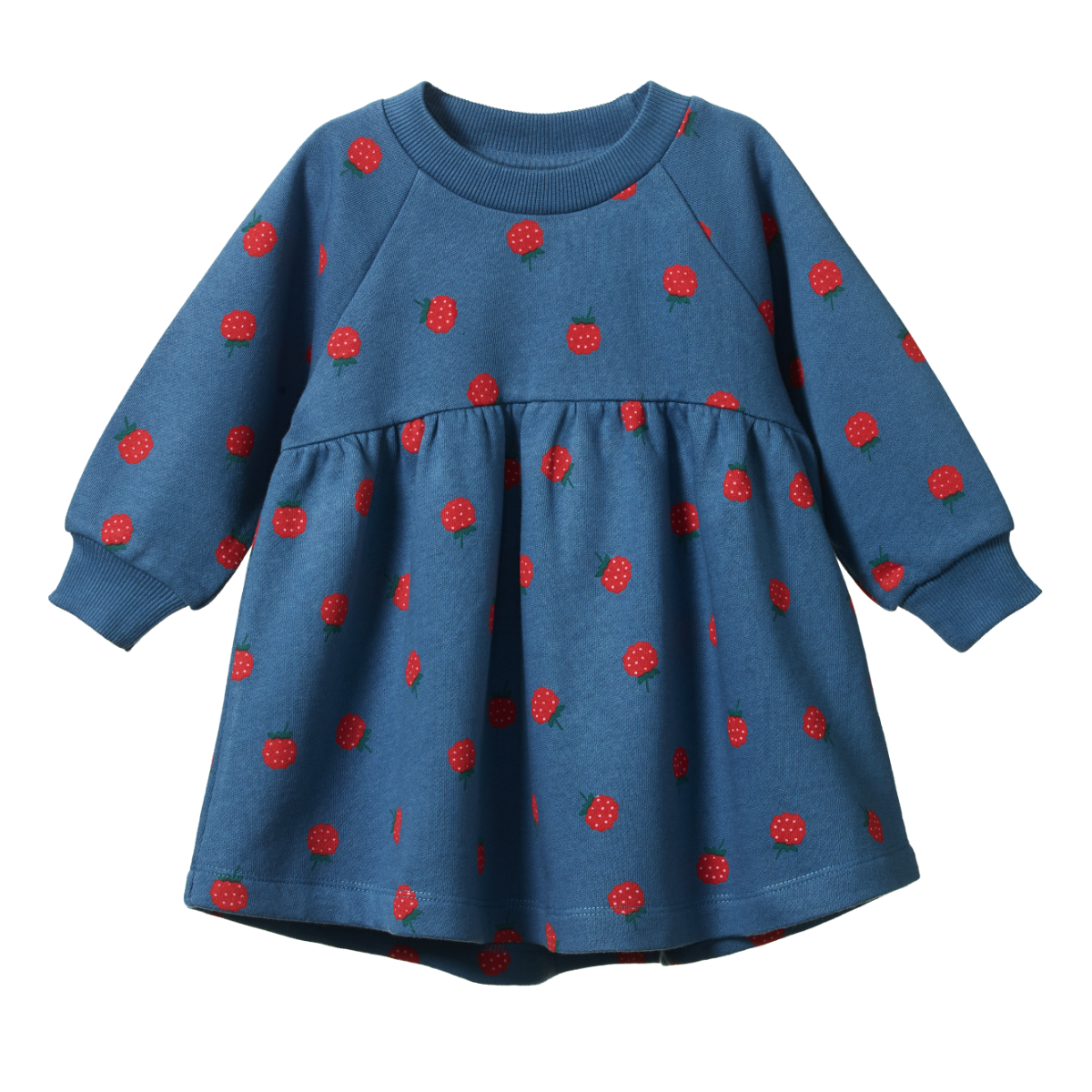 The Ines Dress is a simple yet fun style perfect for those everyday adventures. The design features cosy long raglan sleeves and a roomy fit for everyday wear. The sleeve hems are finished with rib cuffs to keep arms toasty, while the skirt is gathered to create a touch of fullness.