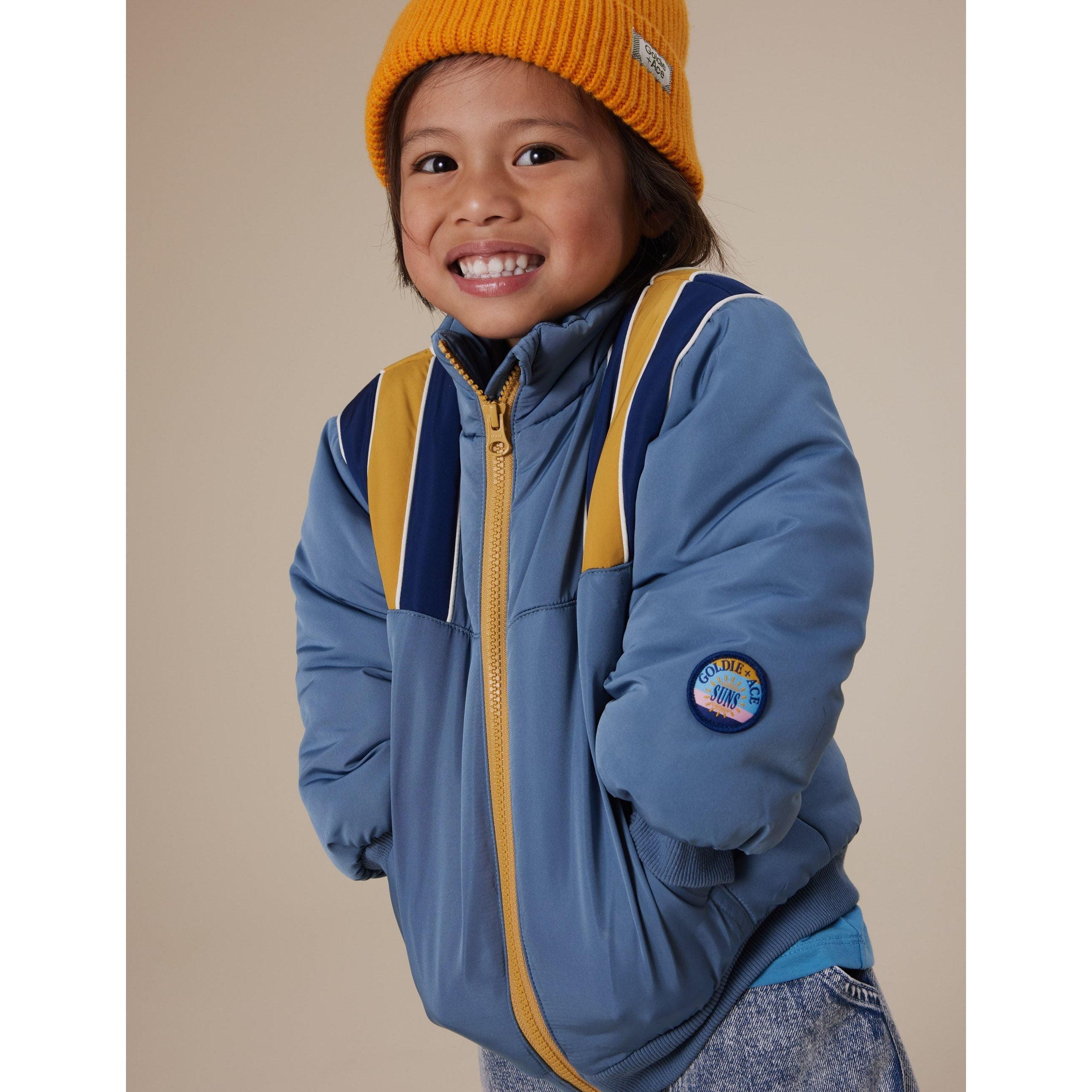 True to size. Size up for more room to layer. Features contrast colour piped panelling, soft brushed cotton lining and a retro woven badge.