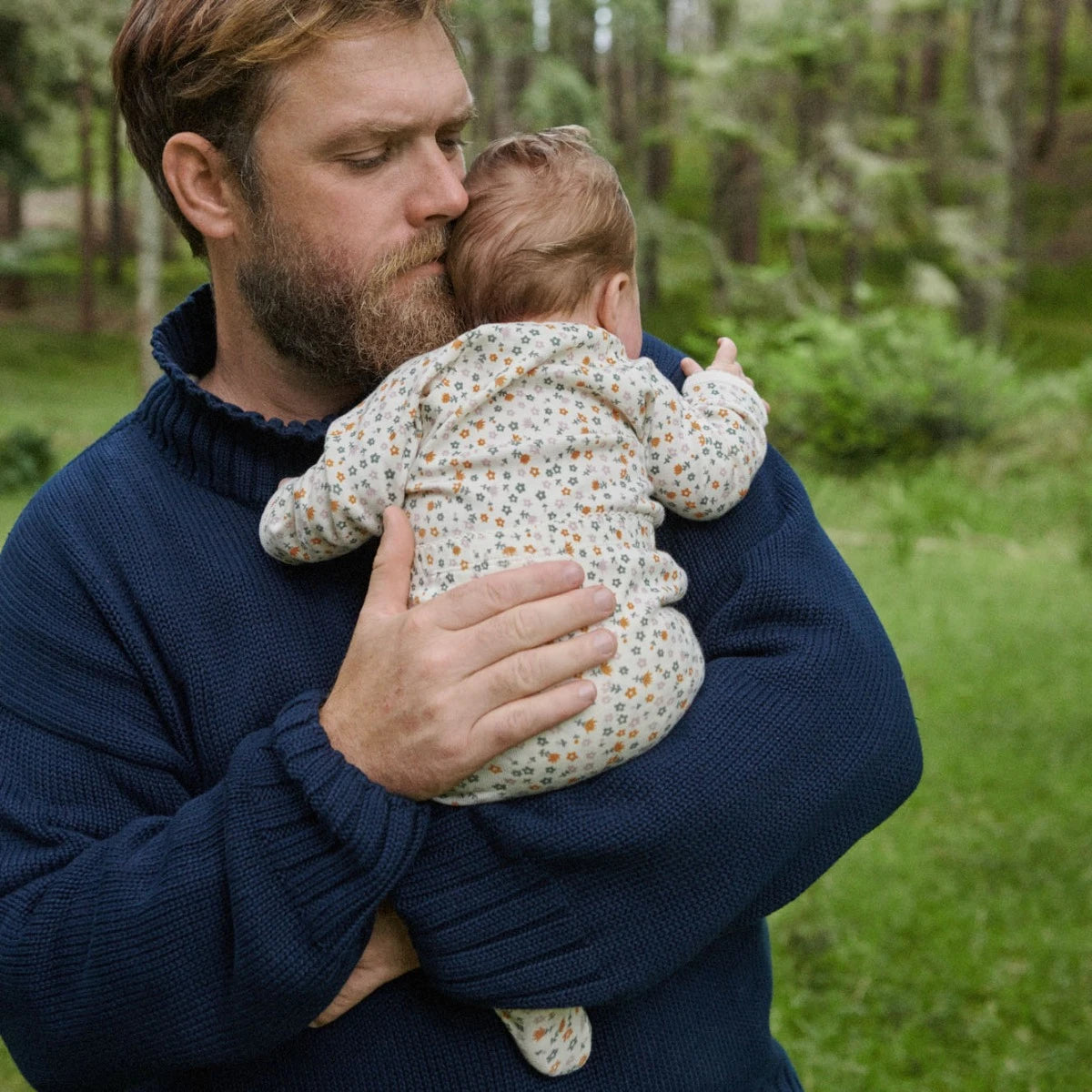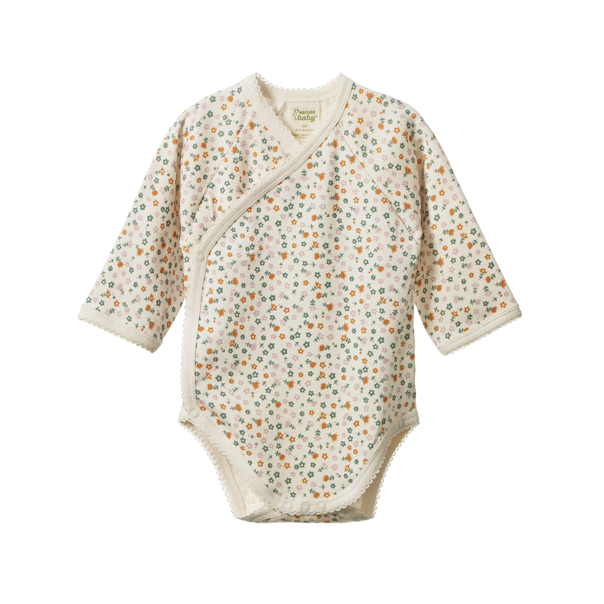 A great option for newborns to avoid having to pull garments over baby's head. Long raglan sleeves and a wrap-around style with a double layer at the front to keep baby’s chest warm. Easy to fasten with domes on the inside and outside, as well as the crotch and outside leg. To minimise shrinkage, this fabric has been pre-washed.