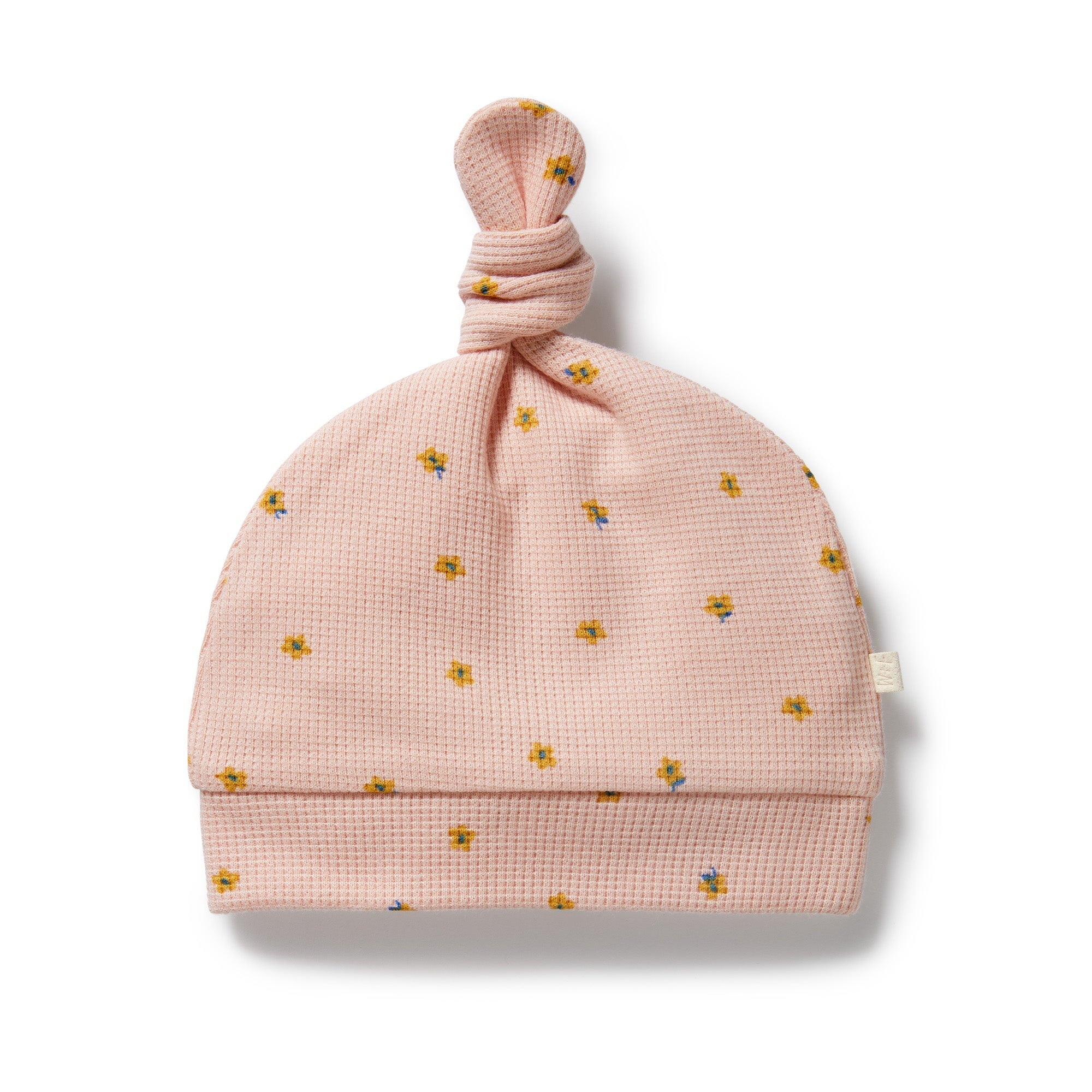 This knot hat by Wilson and Frenchy is made of the softest organic cotton waffle. Featuring a knot that can be adjusted to suit the size and shape of babies head. Baby beanies are ideal for newborns - they protect their heads from the cold while making them look adorable. Key Features: Adjustable knot, 95% organic cotton, 5% elastane. Certified by: Ecocert, EGL 212333. Australian owned and designed. Packaged in a bio-degradable bag. Details: 95% GOTS certified organic cotton, 5% elastane,Machine washable. Made in India.