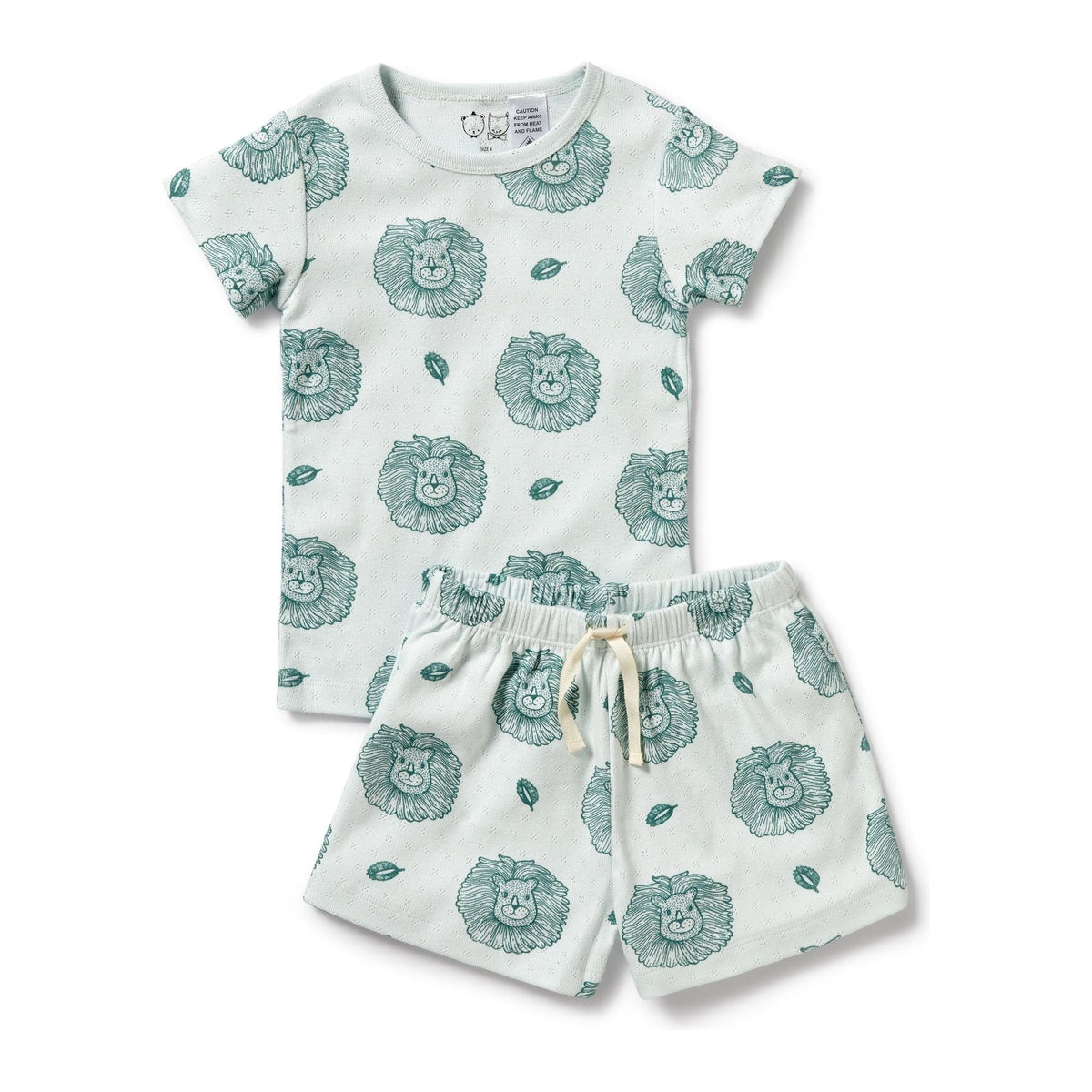 This Little Lion organic pointelle short sleeved pyjama set by Wilson and Frenchy is made from the softest organic cotton pointelle and features an all over print, you can be rest assured that your child is sleeping in softest most comfortable sleepwear around. This set comes with a fitted short sleeved tee and mid-length loose fitted short.