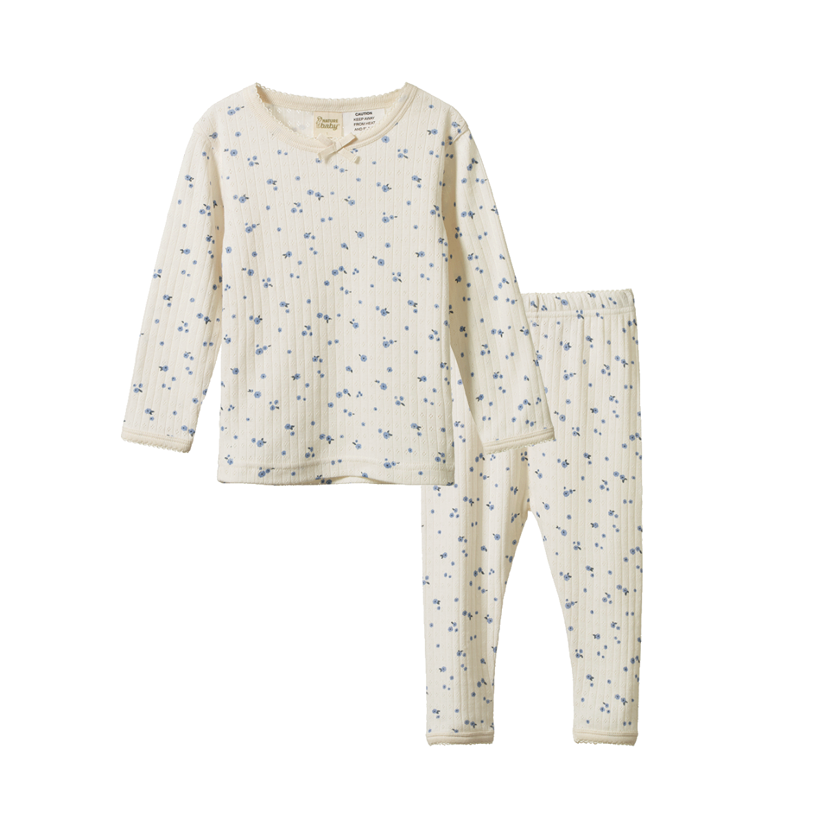 Keep little one cosy through cool winter nights with our 2 piece Long Sleeve Pointelle Pyjama Set. Made from beautiful pointelle cotton with a crew neck style top and elastic waist long pants.