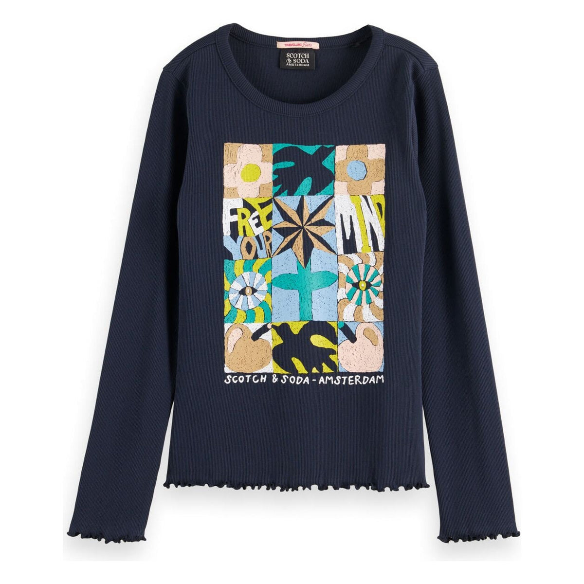 Elevate everyday style with this long sleeved ribbed t-shirt. Featuring a classic ribbed texture and artwork, this t-shirt offers a playful element. Perfect for layering or wearing on its own, it provides a snug fit that moves with you.