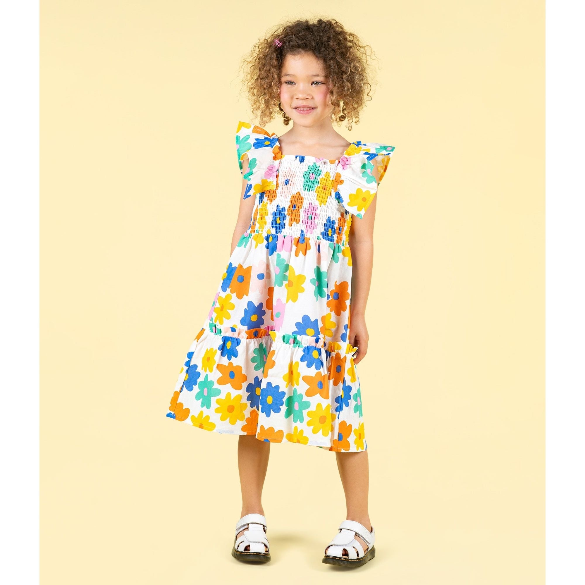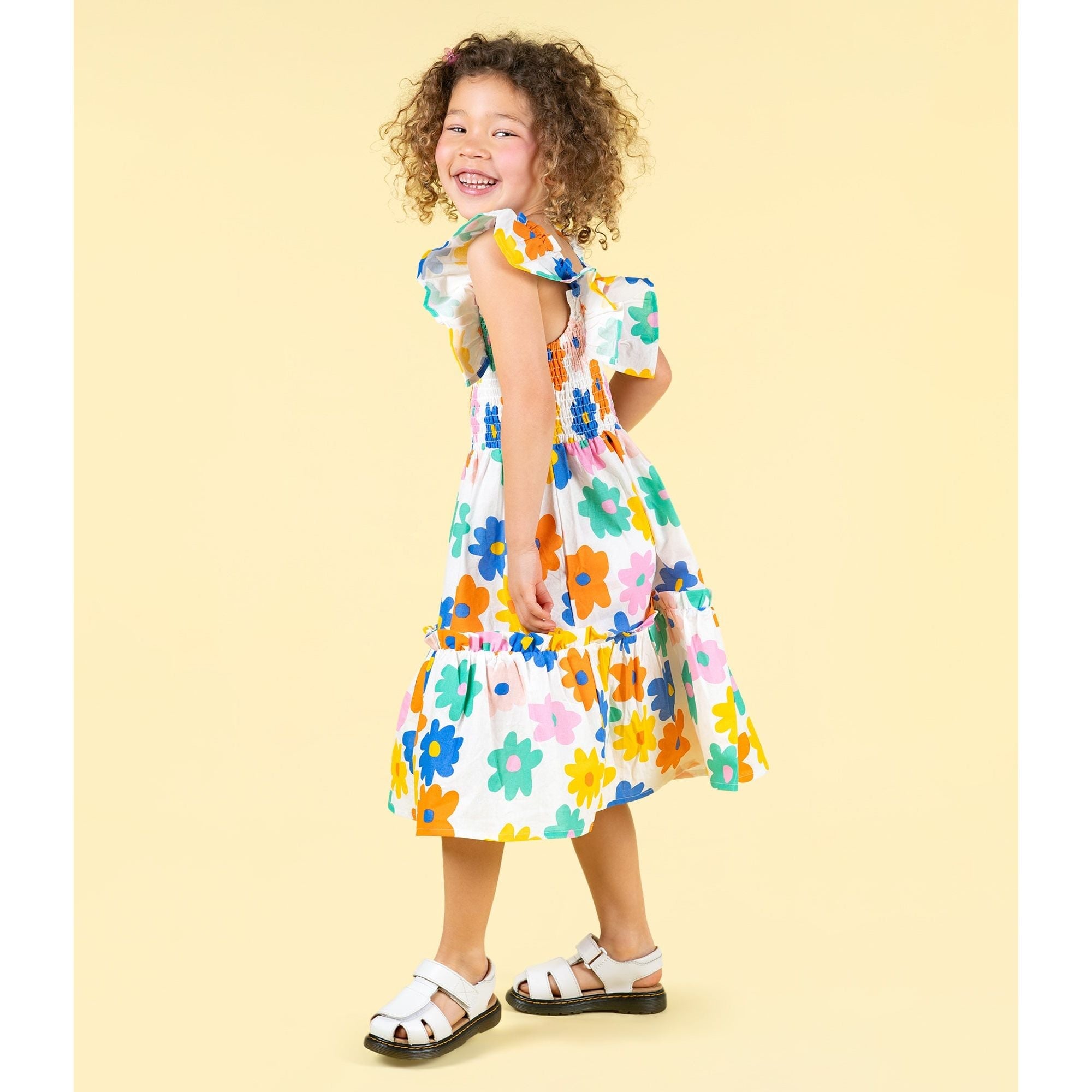 Introducing our Love Me Do Shirred Dress! Made from 100% woven cotton, this dress features a square neck, frill sleeves, a shirred bodice and a gathered skirt. The cream base features a colourful pattern of flowers throughout.