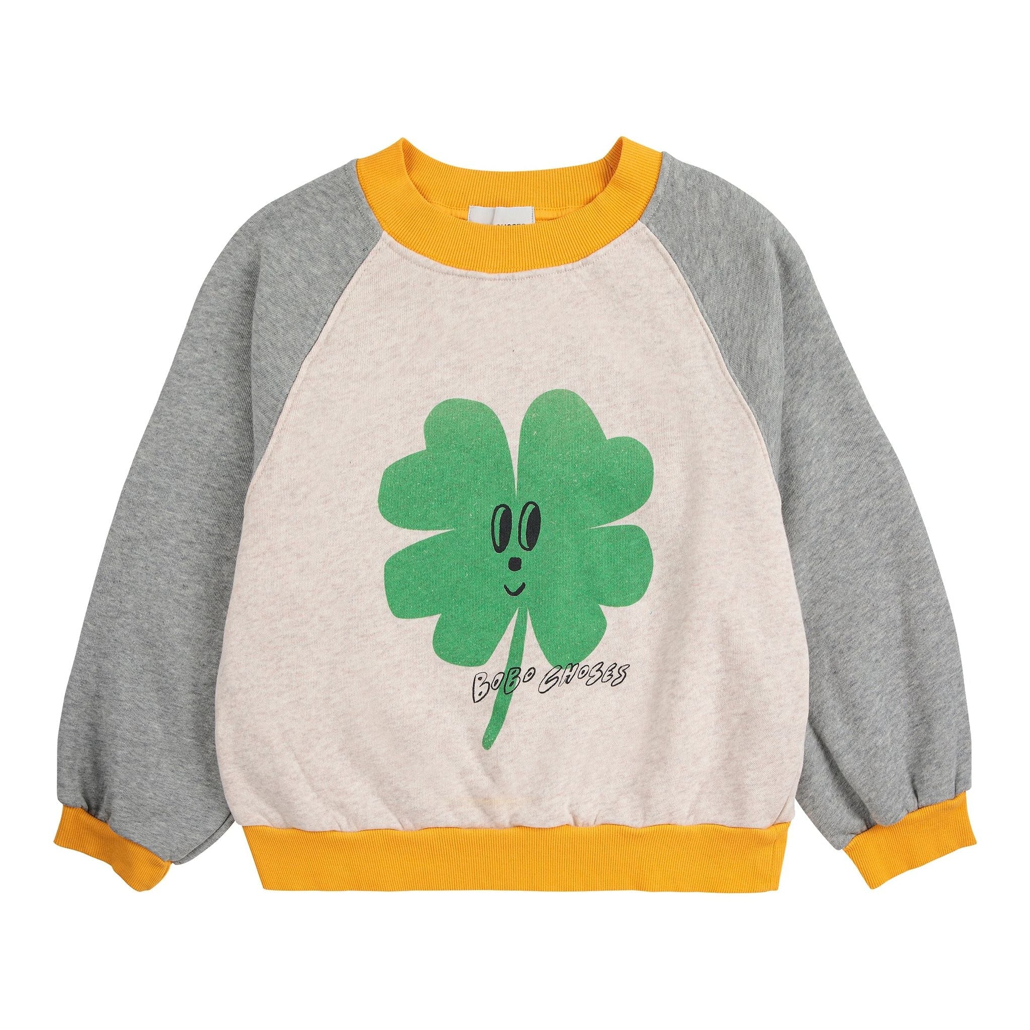 Heather grey sweatshirt. Designed with long sleeves, raglan sleeves, ribbed cuffs, loose fit, ribbed bottom, round neck and inner brush fleece.