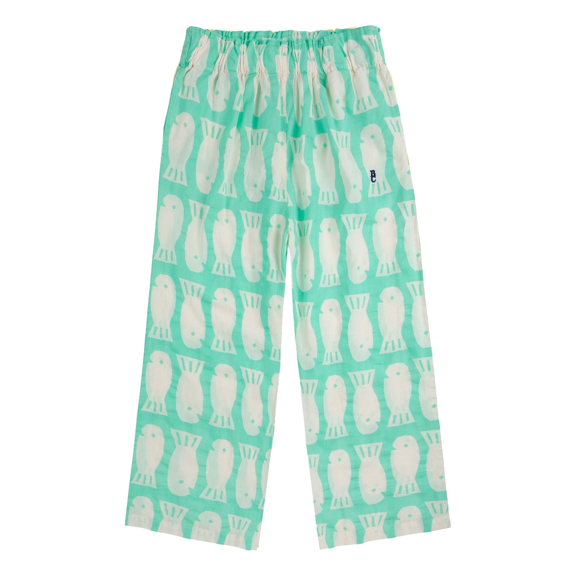 Fresh and relaxed, these light green pants bring a playful touch to any outfit. Made from 100% organic cotton, they feature a regular crotch, elasticated waistband, and embroidery. A baggy fit, long length, and patch pockets complete their functional design. Lovingly crafted in Spain.