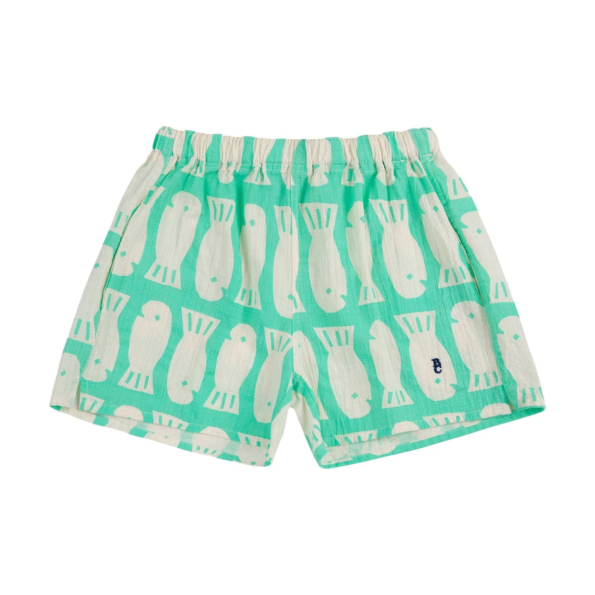 Soft and stylish, these light green shorts are a versatile addition to any wardrobe. Made from 100% organic cotton, they feature a regular crotch, an elasticated waistband, and embroidery details. The loose fit, over-the-knee length, and seam pocket make them ideal for everyday wear. Made in Spain.
