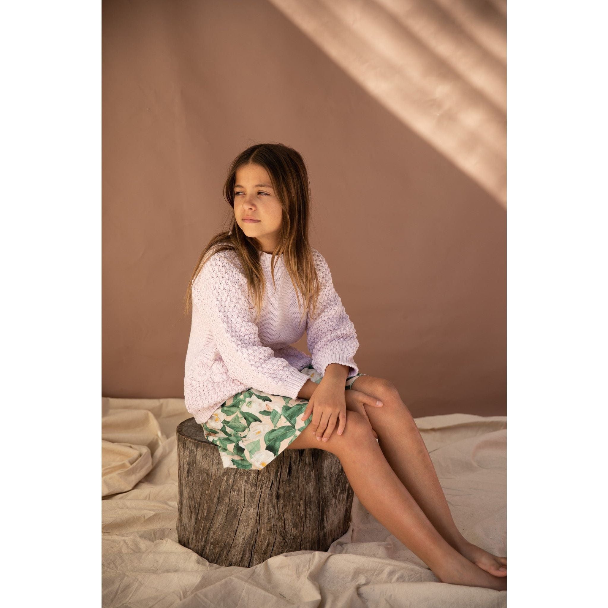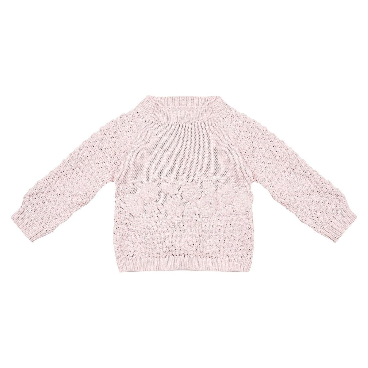 It’s all about the details, embroidered floral front and textured knit sleeves and waist in the sweetest “coconut ice” pink, makes for a darling combination that will give you heart eyes.