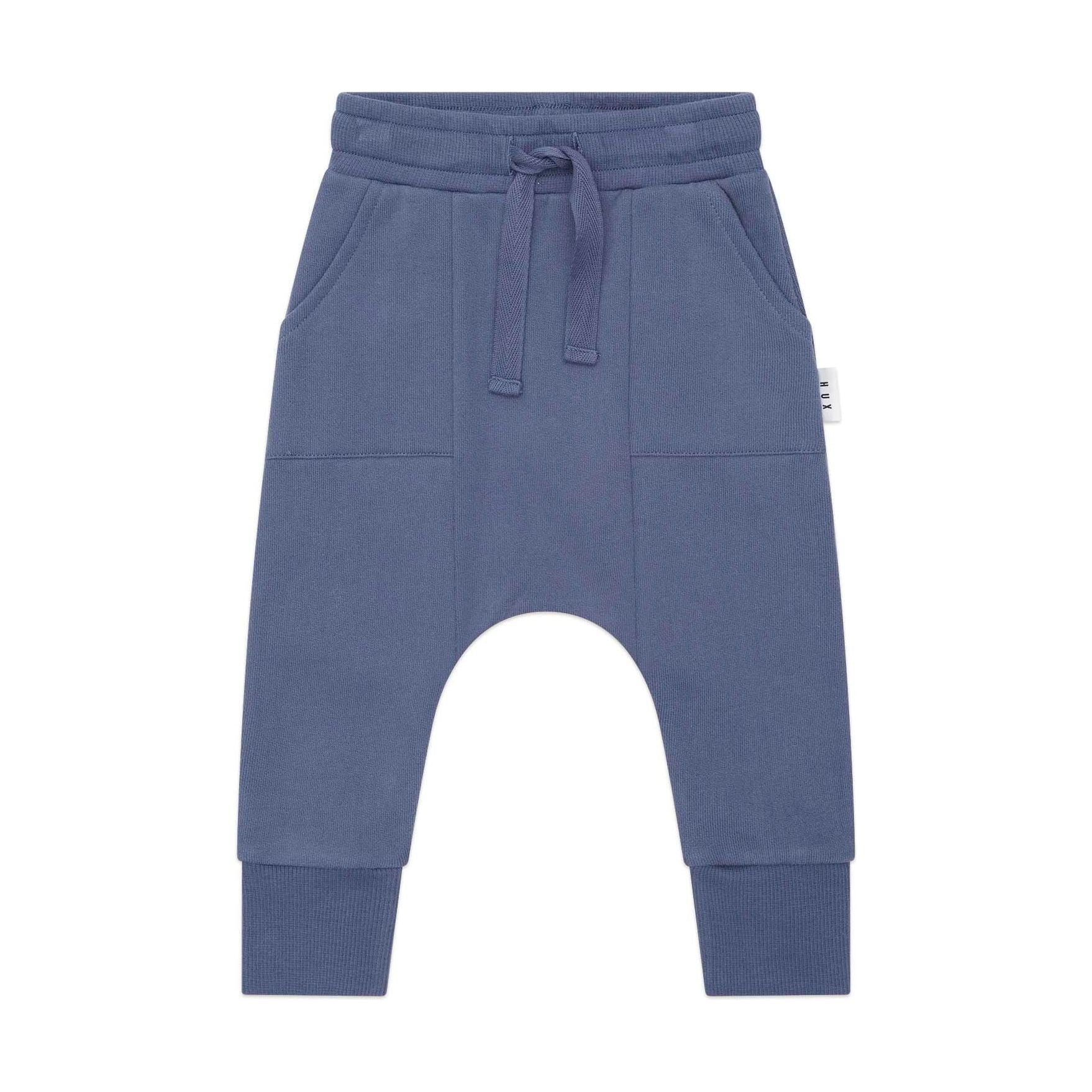 These warm and cosy fleece track pants with a drop crotch are a home run for cool comfort and sporty style. Made from fluffy organic cotton, they feature a functional drawstring for an adjustable fit, a cute-yet-comfy Huxbear embroidery knee detail and a soft, stretchy waistband to keep little tummies snug.
