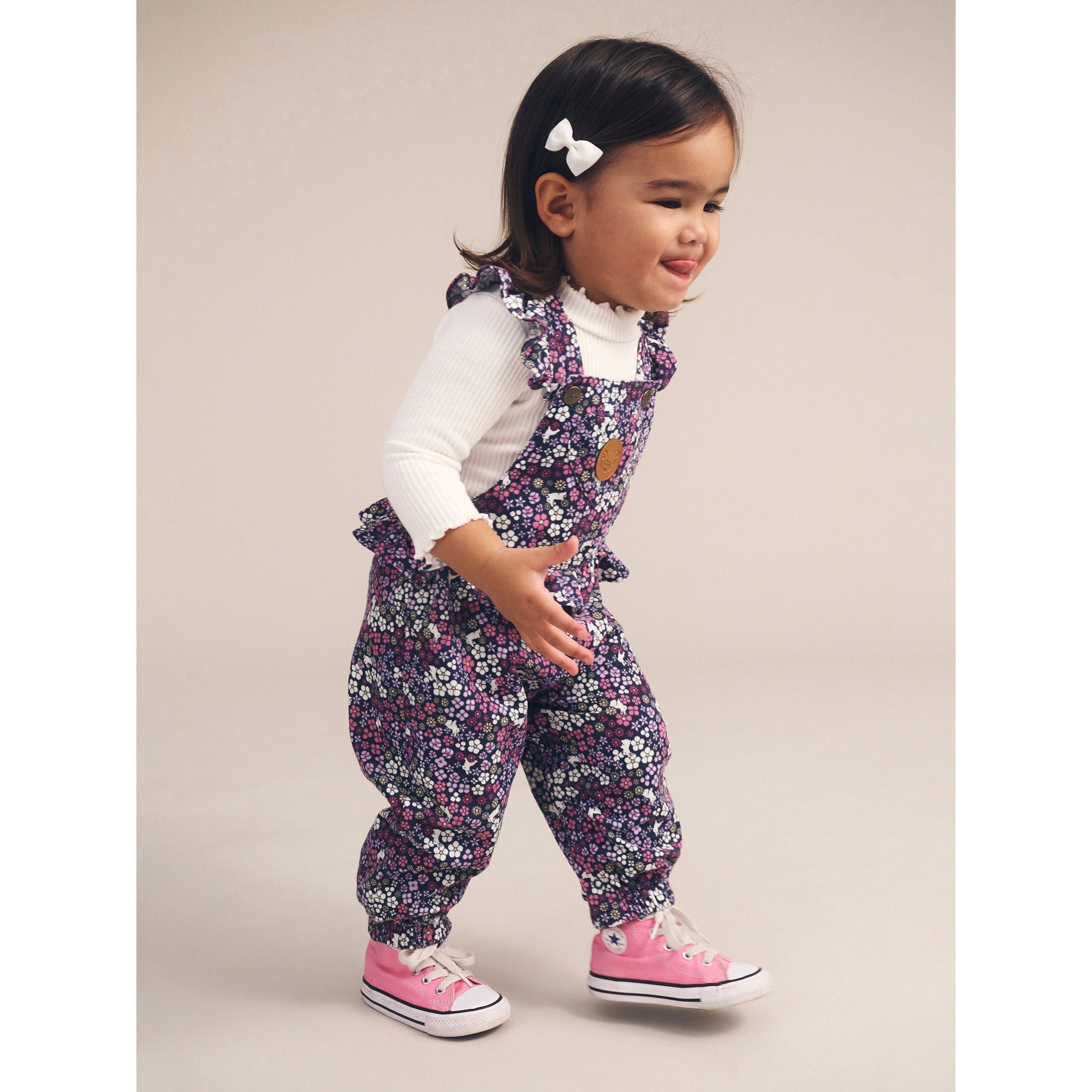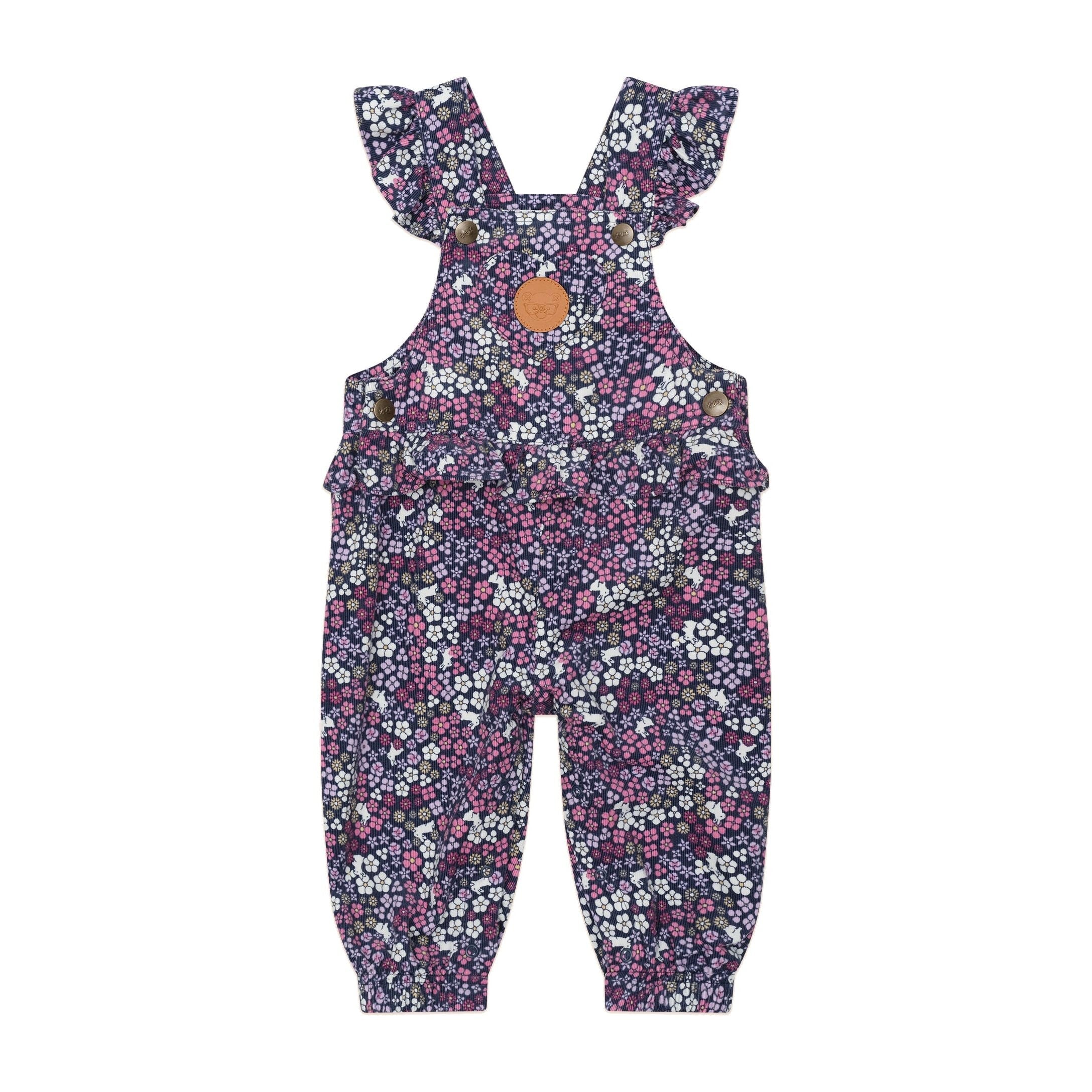 A classic pair of 90s style overalls with a sweet shoulder frill. Made from soft, lightweight cotton cord, they feature adjustable straps, a sweetheart-shaped pocket and a pretty floral print. Baby sizes include stainless steel crotch snaps for easy dressing. Style them alone or over a tee.