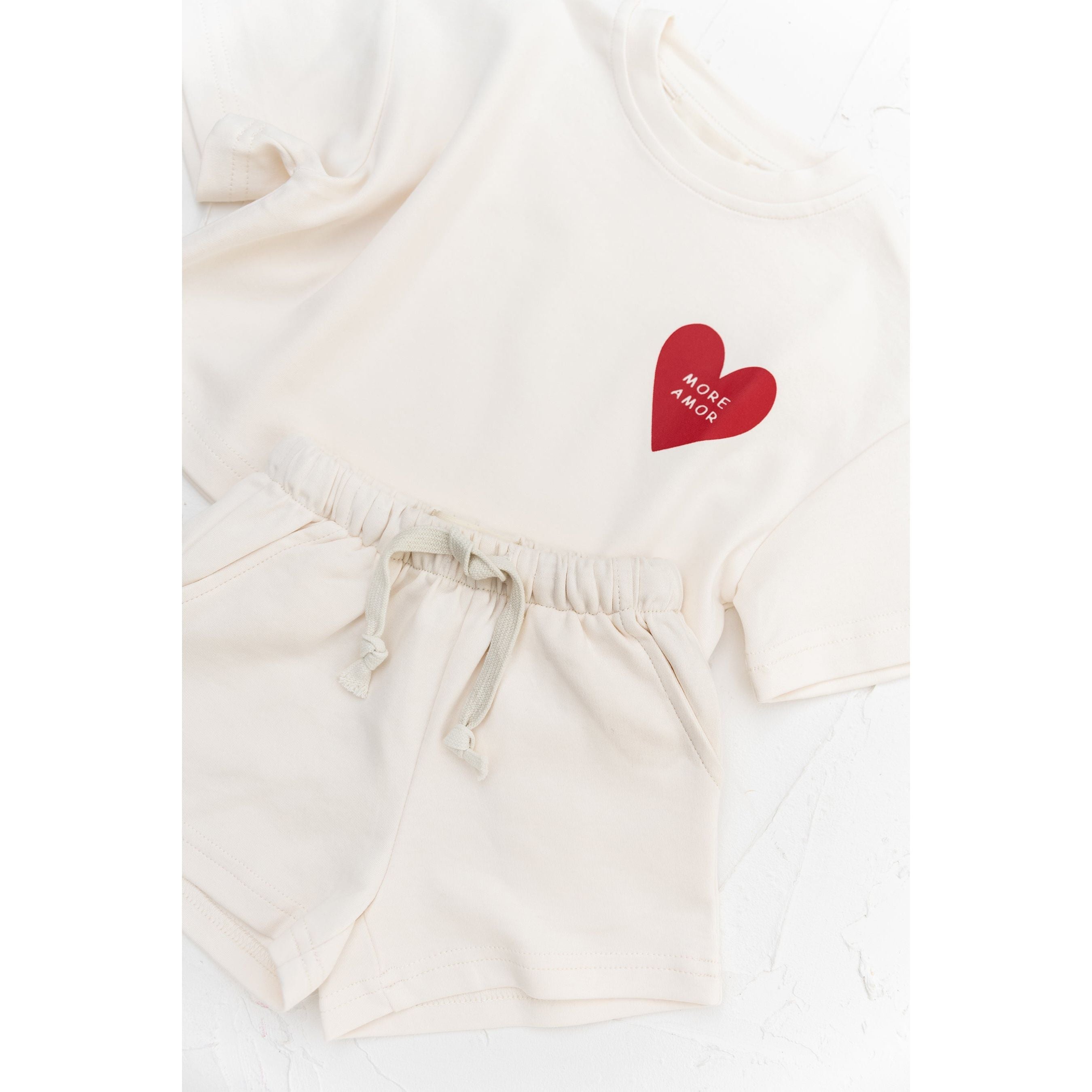 For the perfect mix of comfort and cuteness, the More Amor t-shirt and shorts set is the way to go. Featuring a playful design and soft fabrics, this set keeps your little one cool and comfy all day long.