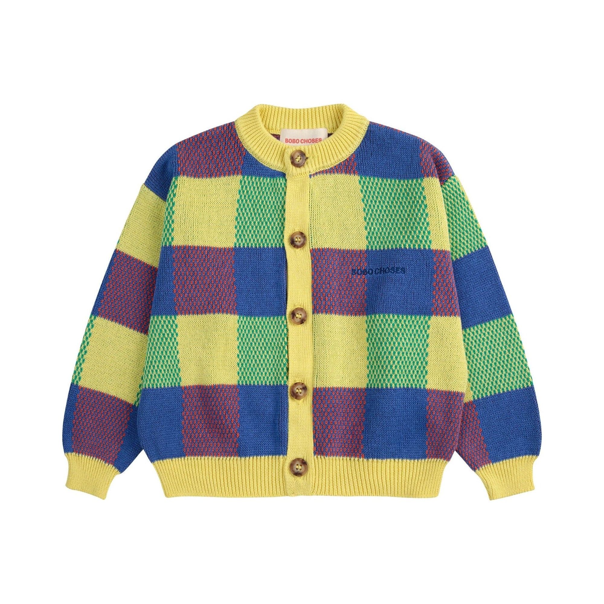 Whimsical and warm, this multicolor cardigan is designed for everyday comfort. Made from 100% organic cotton, it features long sleeves, dropped shoulders, and front button fastening. Ribbed cuffs, embroidery, jacquard, and fine knit create a textured, loose fit with ribbed bottom and round neck. Made in Spain.