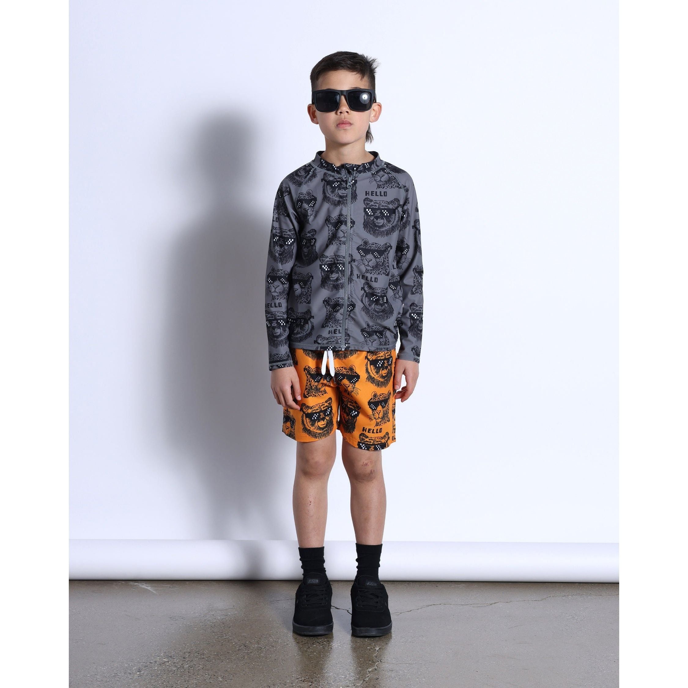 Zip up style rashie for easy on/off! UPF 50+. 85% Polyester // 15% Spandex.