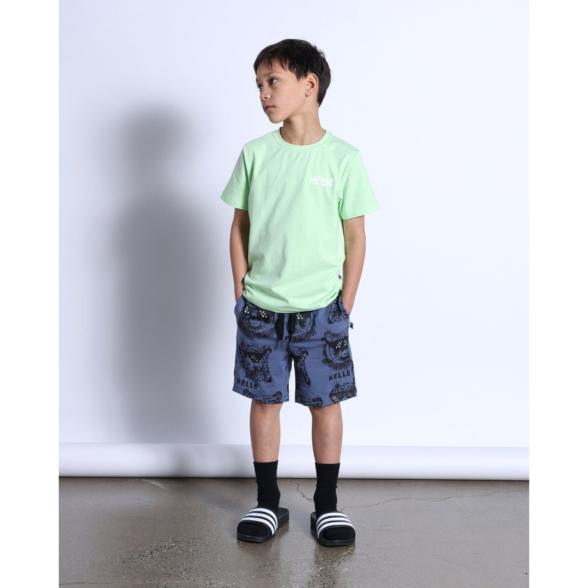 Tshirting weight short with elastic waistband, side pockets, back pocket and shoelace cord. 95% Cotton // 5% Elastane.