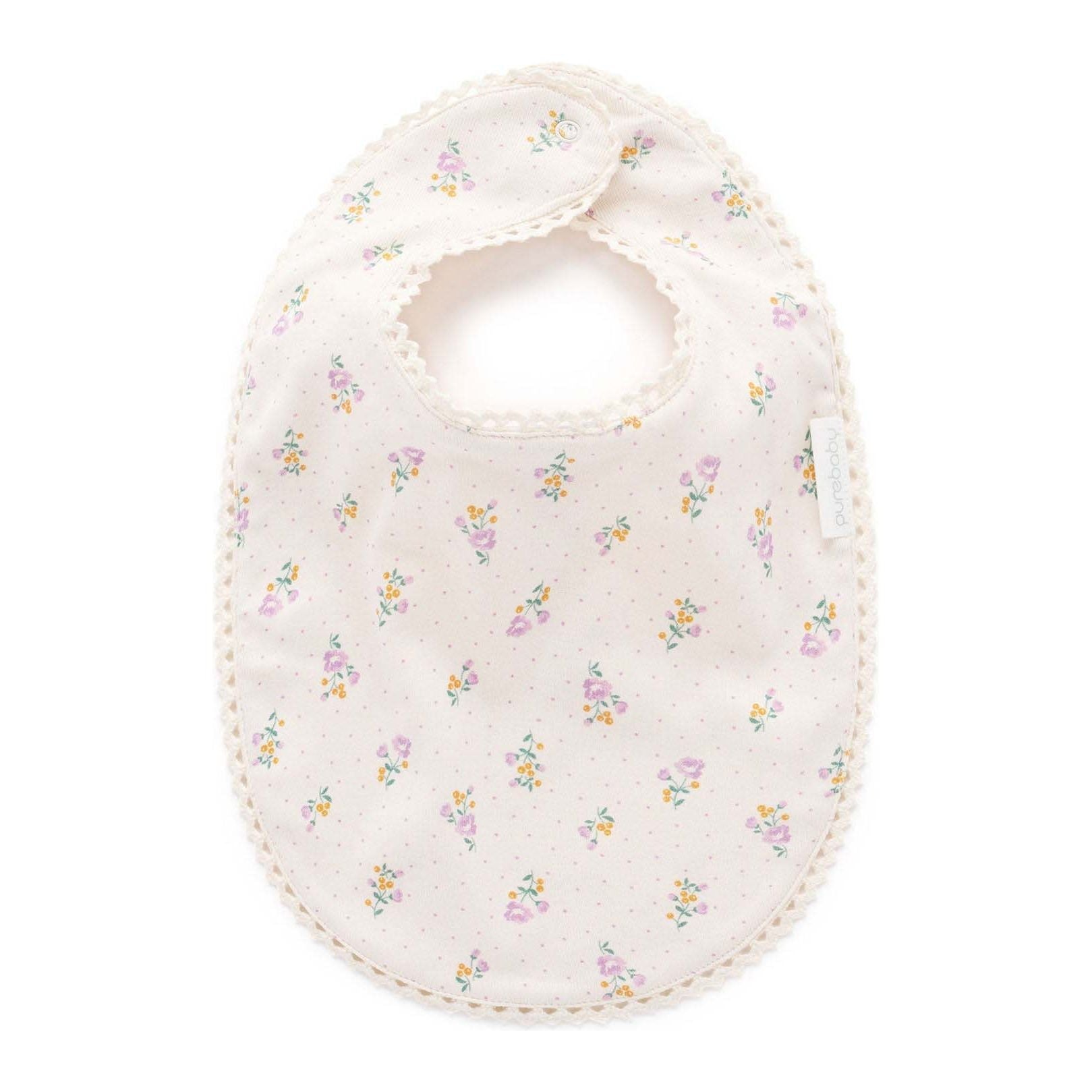 Our Primrose Bib is perfect for avoiding any spills and keeping those dribbles at bay! Made from the softest 100% Organic Cotton with an absorbent towelling backing. Fastens with adjustable snap buttons and designed with extra length for additional coverage.